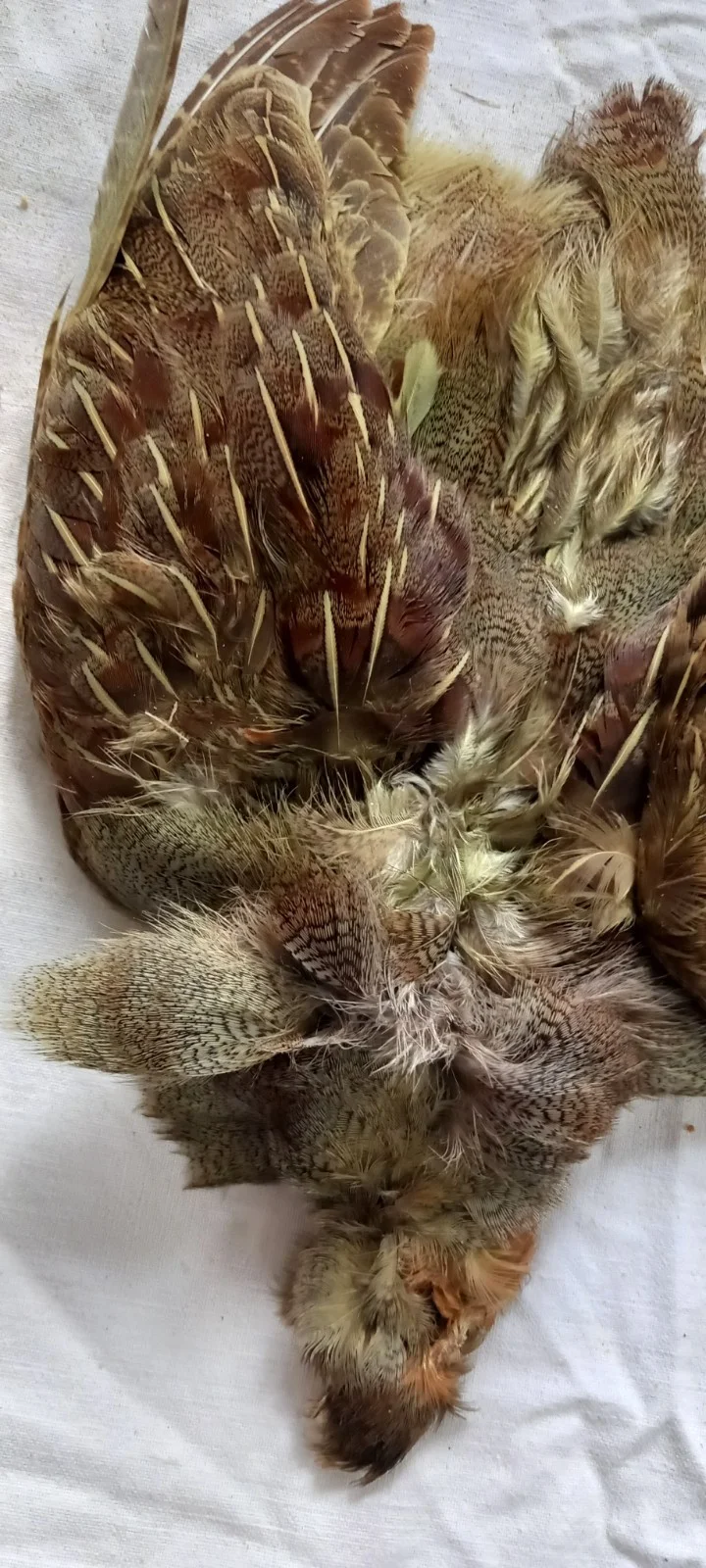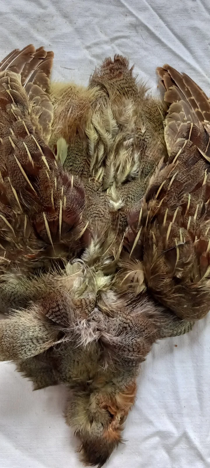 Fly Tying Materials. Dyed Partridge Skin And Another Wing.
