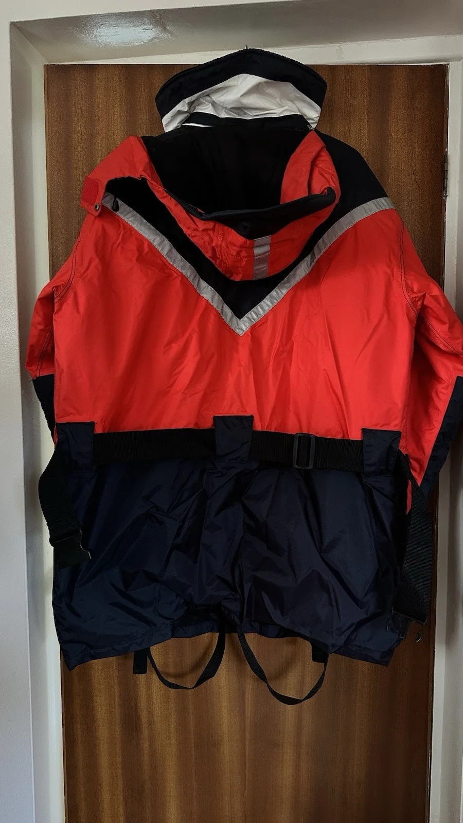 The Sundridge Stormbeach Crossflow Flotation System Jacket and Trousers in size XL offer a unisex adults' flotation suit designed for fishing and other water activities. The bright red and navy colour combination ensures visibility in the water, while the brand's reputation for quality ensures safety and comfort. Perfect for those looking for a reliable flotation system to stay afloat while out on the water.Nearly new suit only worn a couple of times. Pockets all clean and there’s plenty of them. Velcro all clean. Comes from pet free smoke free home . Thanks for looking