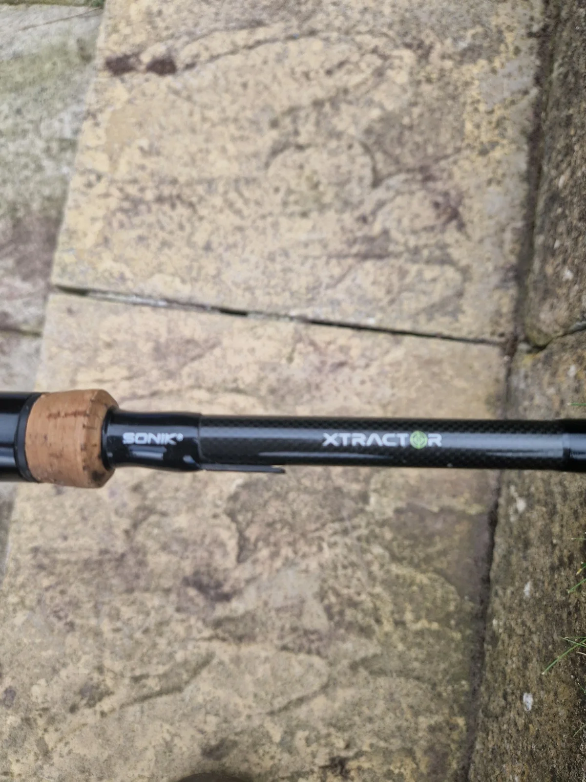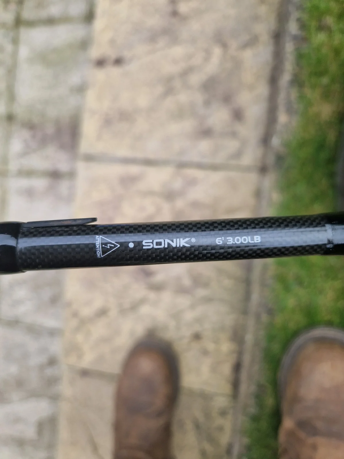The Sonik Xtractor 6ft 3.00lb casting rod is a high-quality fishing tool designed for freshwater fishing, specifically targeting carp. Made from durable carbon fibre material, this rod is lightweight yet sturdy, making it suitable for long days out on the water. The 6ft length and fixed reel seat provide stability and control, while the full grip style ensures a comfortable and secure hold for both left and right-handed anglers. The sleek black colour adds a stylish touch to this must-have fishing accessory from the reputable Sonik brand.Used about 10 times