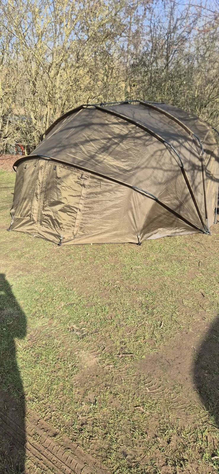 The Mk Angel Sport Bivvy is a 2-person bivvy designed for anglers and fishing enthusiasts. This green bivvy comes with a window for ventilation, a carrying case for ease of transportation, and is waterproof to protect from the elements. The detachable groundsheet allows for versatility in setting up, making it a practical and reliable choice for outdoor adventures.collection only from pe11 spalding area