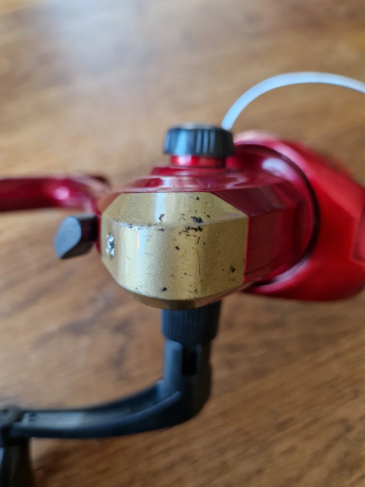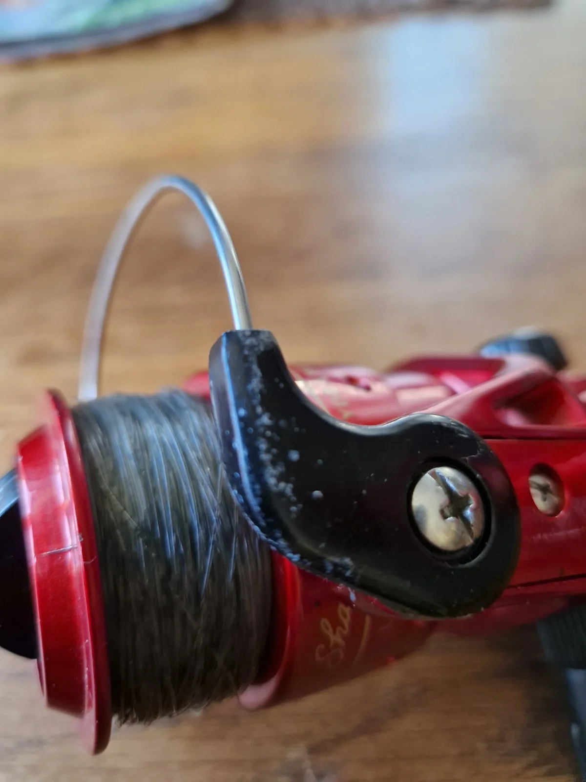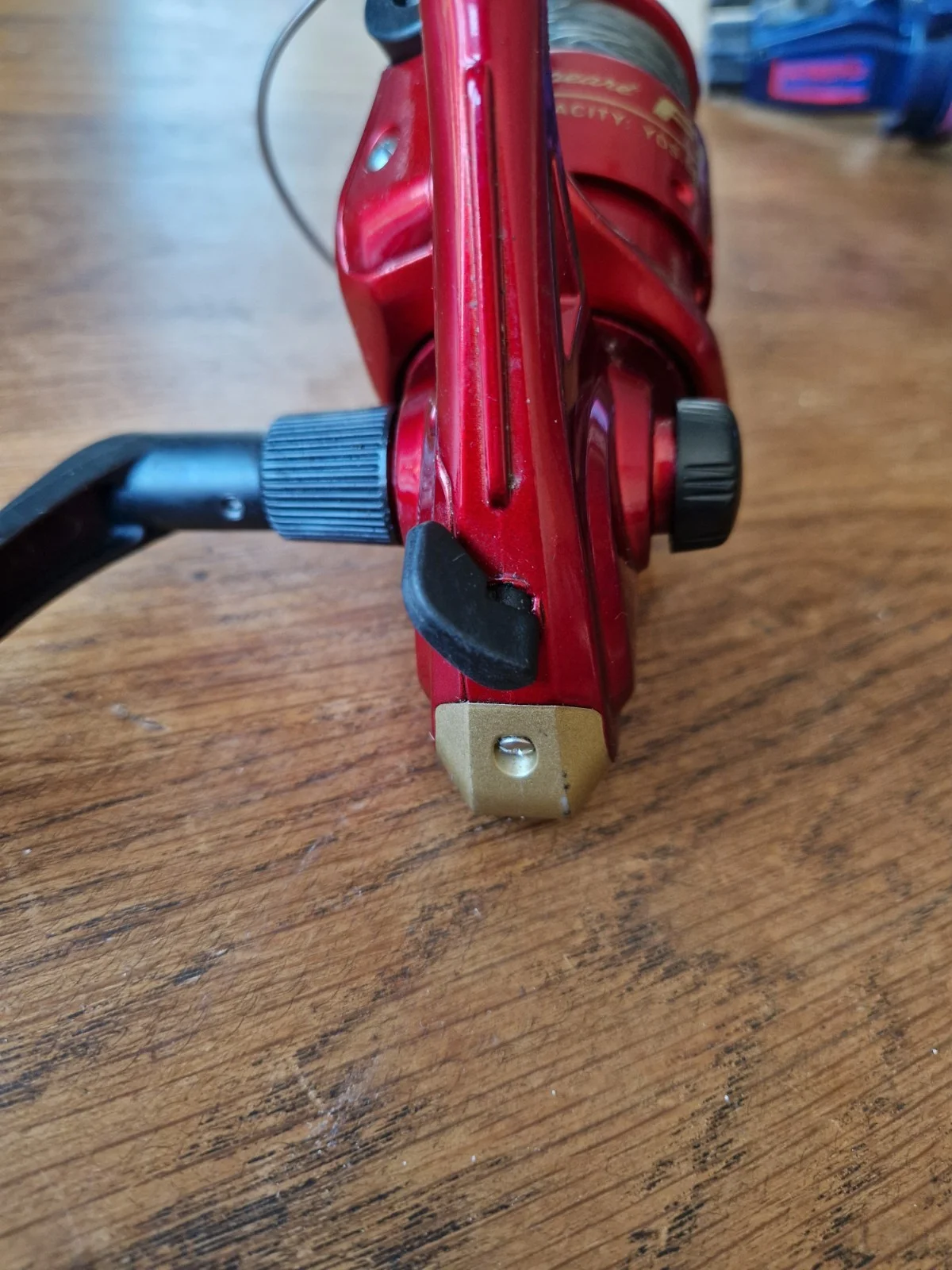 The Shakespeare Firebird XT Fishing Reel in red is a high-quality spinning reel designed for freshwater fishing. With a gear ratio of 4.3:1 and ball bearings, it provides smooth and efficient performance. This pre-spooled reel comes in one piece and is suitable for catching all freshwater fish species. Made in China by Shakespeare, a reputable brand in the fishing industry, this reel is in good working order and ready for a day out on the water.few scrahes on bail arm and on bottom