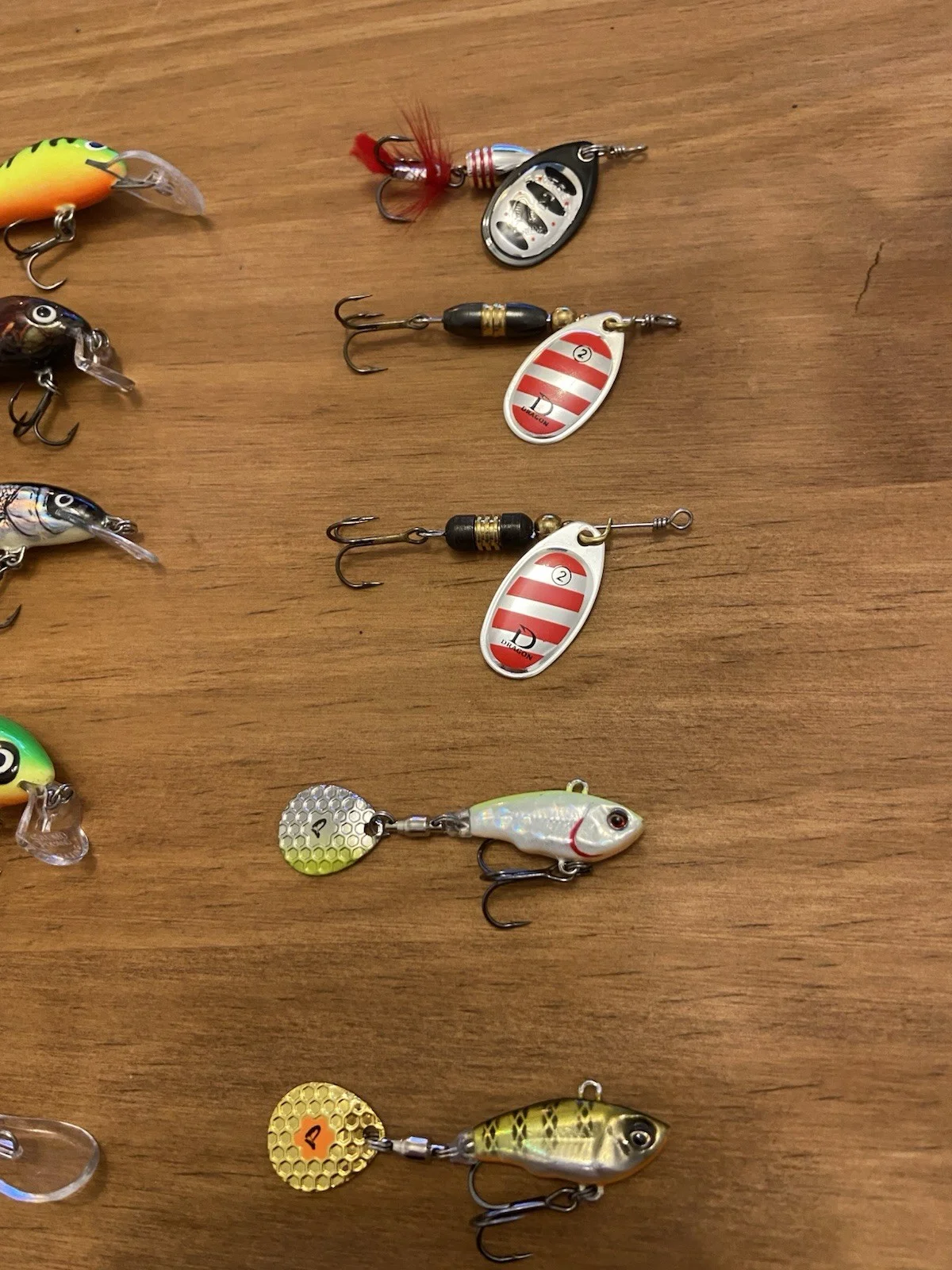 Salmo Lures + Spinning Tools Set, Rapala, Savage Gear Box, Spinners Spin Tails