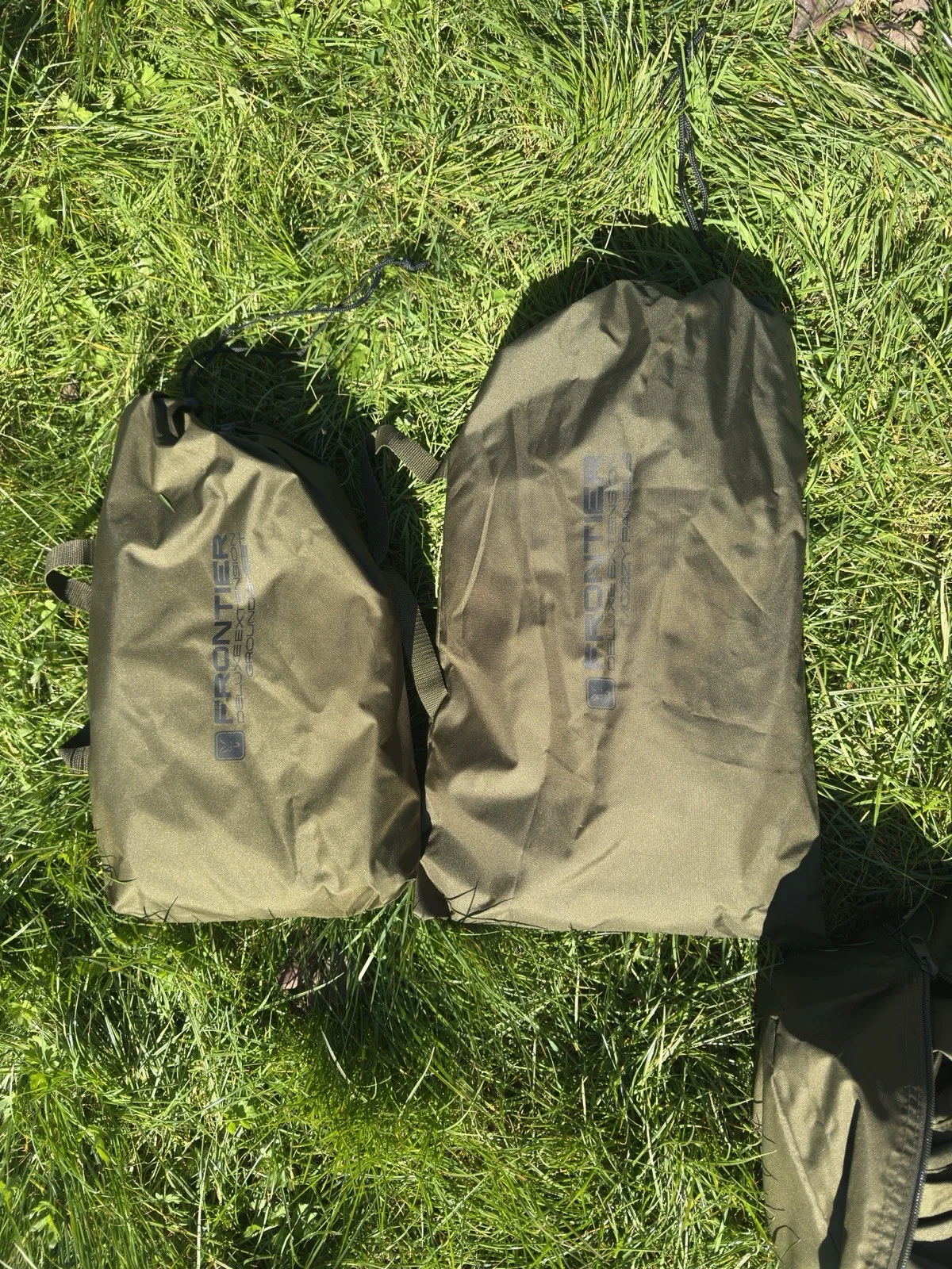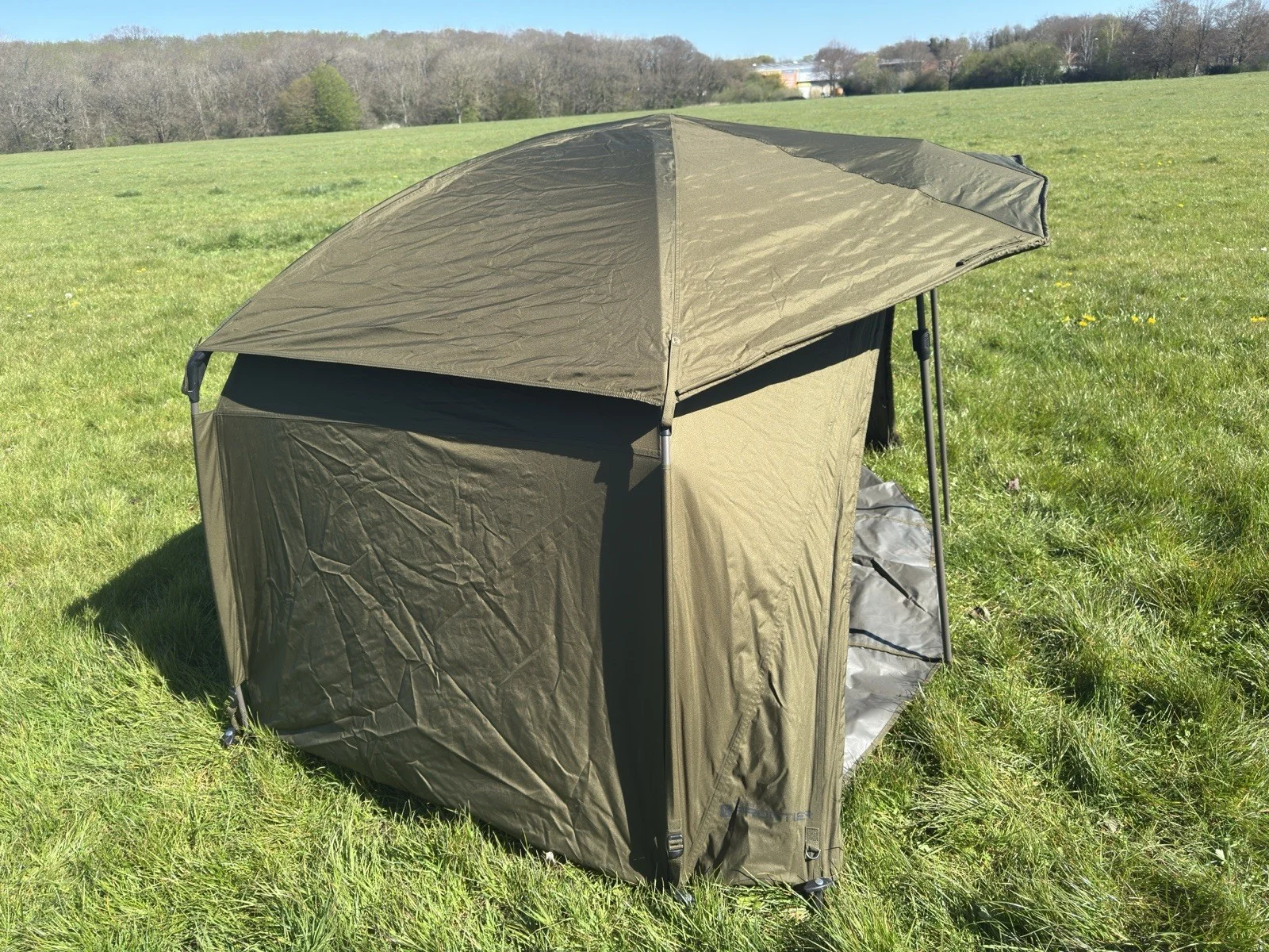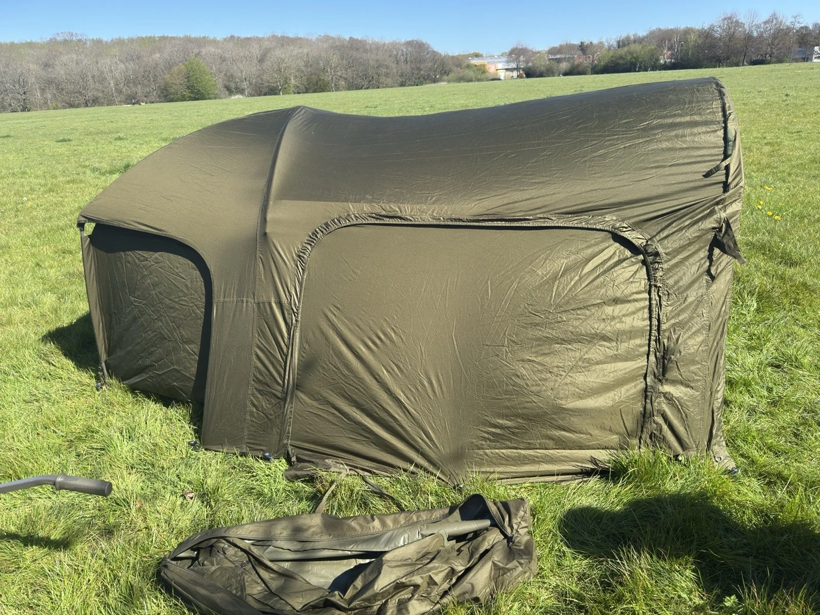 Fox frontier 1 man bivvy with vapour peak and deluxe extension both come with groundsheets and clear and mozzy mesh infill panels excellent used condition no rips or tears.