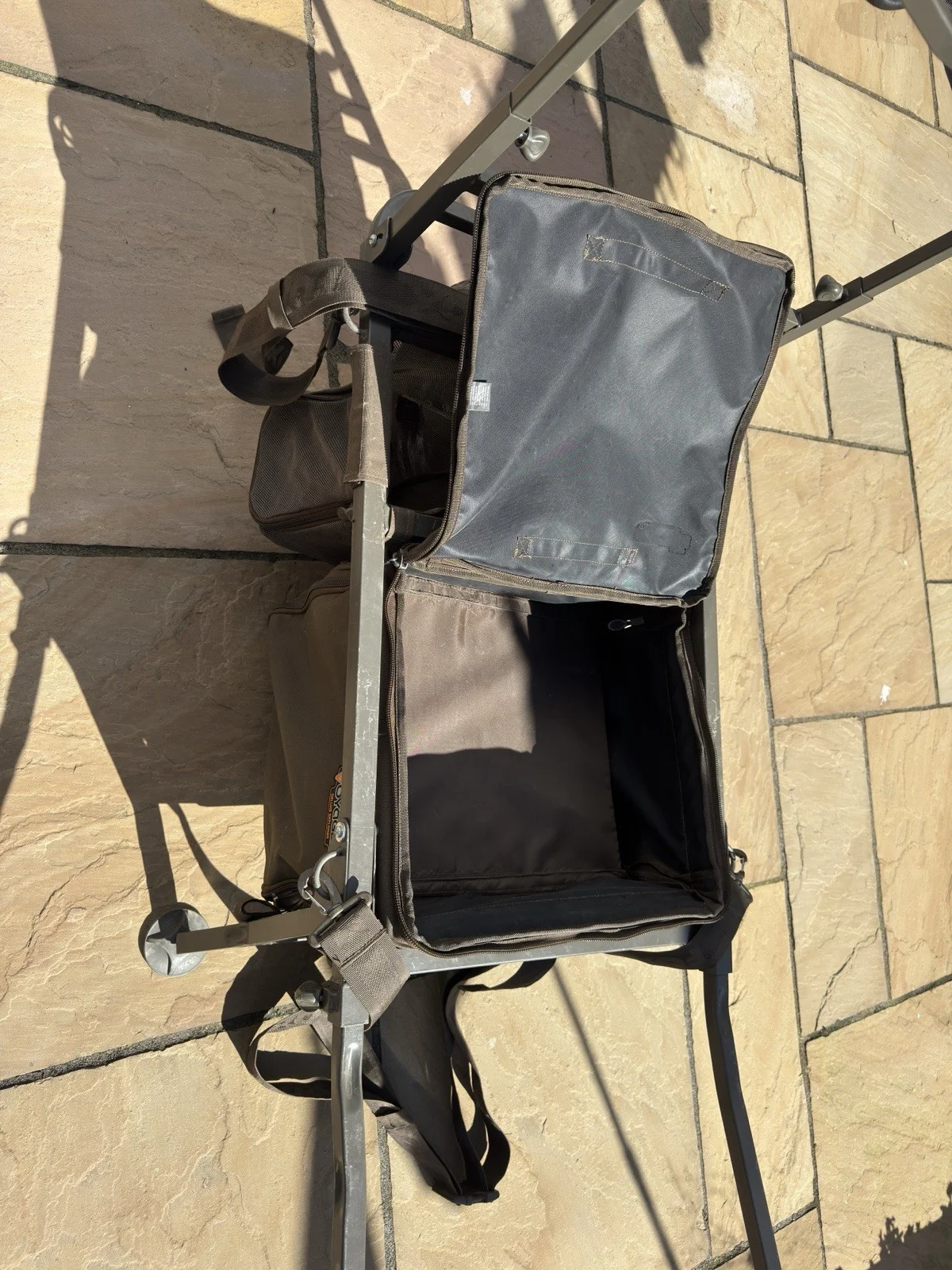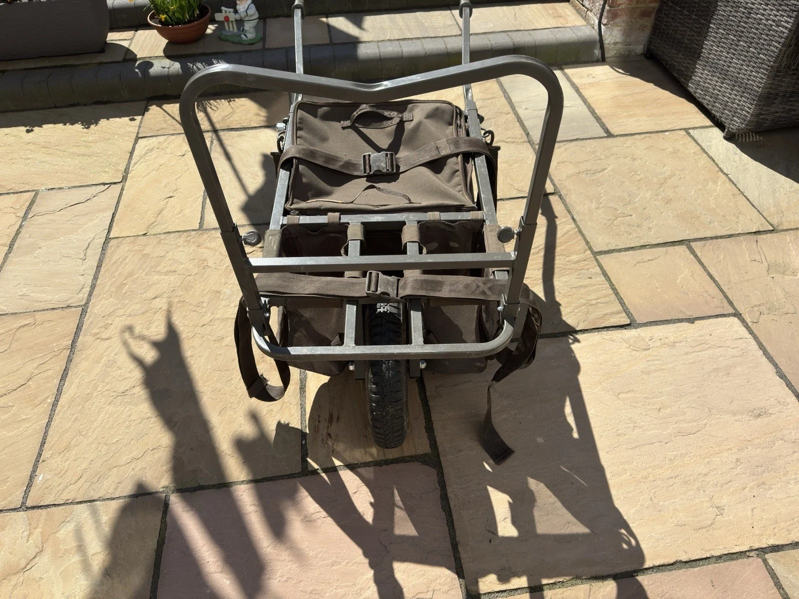 Fox voyager explorer barrow good used condition comes with barrow straps and waterproof cover,also included in price are 3 tackle and insulated food drink bags which go inside barrow bag.