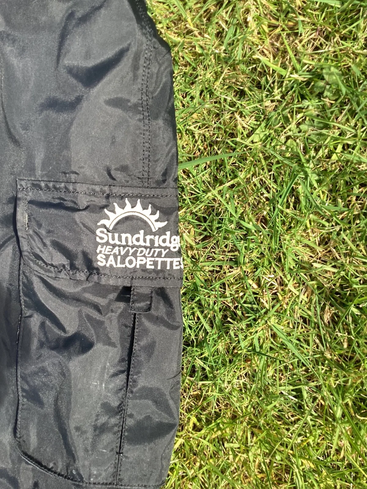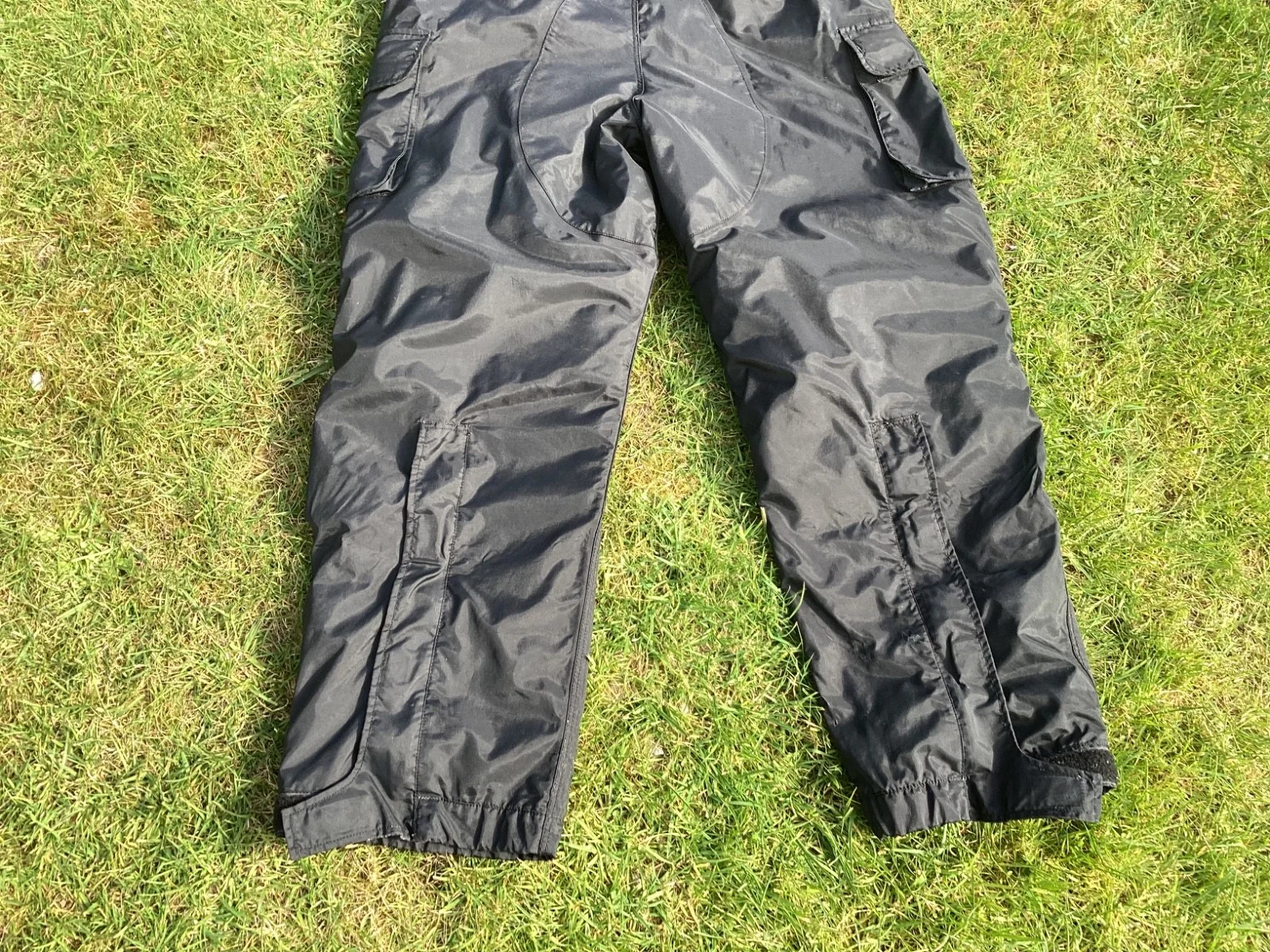 Bib and brace warm padded fishing trousers in good used condition.Only defect is the ankle zip have lost there sliders,they still close ok as the Velcro is good.Hardly used very warm.Thanks for looking.