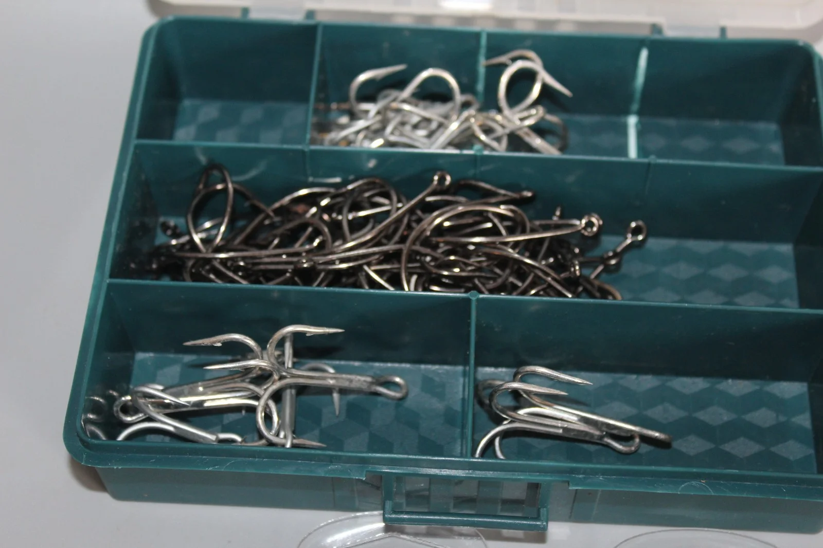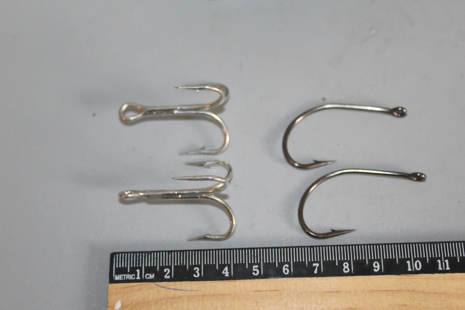 2 PACKS TERRY EUSTICE HEAVY DUTY LURE SEA TREBLE HOOKS # 1 & BOX OF LARGE HOOKS2 packs Terry Eustice hooks 5 per pack. Heavy Duty lure / sea treble hooks size 1Also small tackle box of various large trebles, sea fishing and a qty of large sea hooks. Good mixed lot good conditionPlease look at the photos as these form part of the description. Use the zoom to look closely at the item showing the condition of the item before bidding. Item shown in photos is the item for sale.All items unless stated are antique or vintage and will therefore by definition not be in new condition and may have signs of age or use, please be assured that we always endeavour to offer the most accurate description possible of the item's condition with illustrative photographs, please use zoom to take a closer look at photographs. Fishing reels and rods may have faults / damage that we may have missed. Any major faults will be listed. Some minor surface marks or flaws etc consistent with age and use and manufacture etc may not be mentioned unless they cause a problem on the whole to the item. If you need further information on condition please email us.We do combine postage costs but please wait for a combined invoice to be sent before paying for multiple purchases. We do not allow collection in person. PLEASE READPaymentPayment accepted by Ebay paymentsPostageGoods are posted upon cleared payment. Postage Postal charges include a small charge for packing materials. We post within three working days of cleared payment, Proof of posting is always obtained, Overseas buyers please allow for a reasonable time for your package to arrive as airmail delivery times can vary from country to country.UK Postage & packaging will be combined to keep costs down wherever possible.In the event of any problems please let us know as problems can nearly always be solved. Please contact us through ebay messages.ReturnsAt auction all sales are final, although we do offer, in compliance with distance selling regulations, a 14 day returns policy for items which have been inaccurately described or purchased Buy it now or via our ebay shop. Any problems please report them within 3 days of receiving the item.If, on receipt of an item, you are not entirely satisfied, a full refund is available on safe return of the item to us (excluding postage costs). Items must be returned in original packaging and sent by recorded / trackable postWe do not offer partial refunds. No returns will be accepted without prior approval and agreement. Return postage will not be refunded unless agreed prior to the return.FeedbackPlease leave feedback upon receipt of item so that we know you have received your item and we will leave feedback in return. If there is a problem please contact us first as problems can usually be resolved.