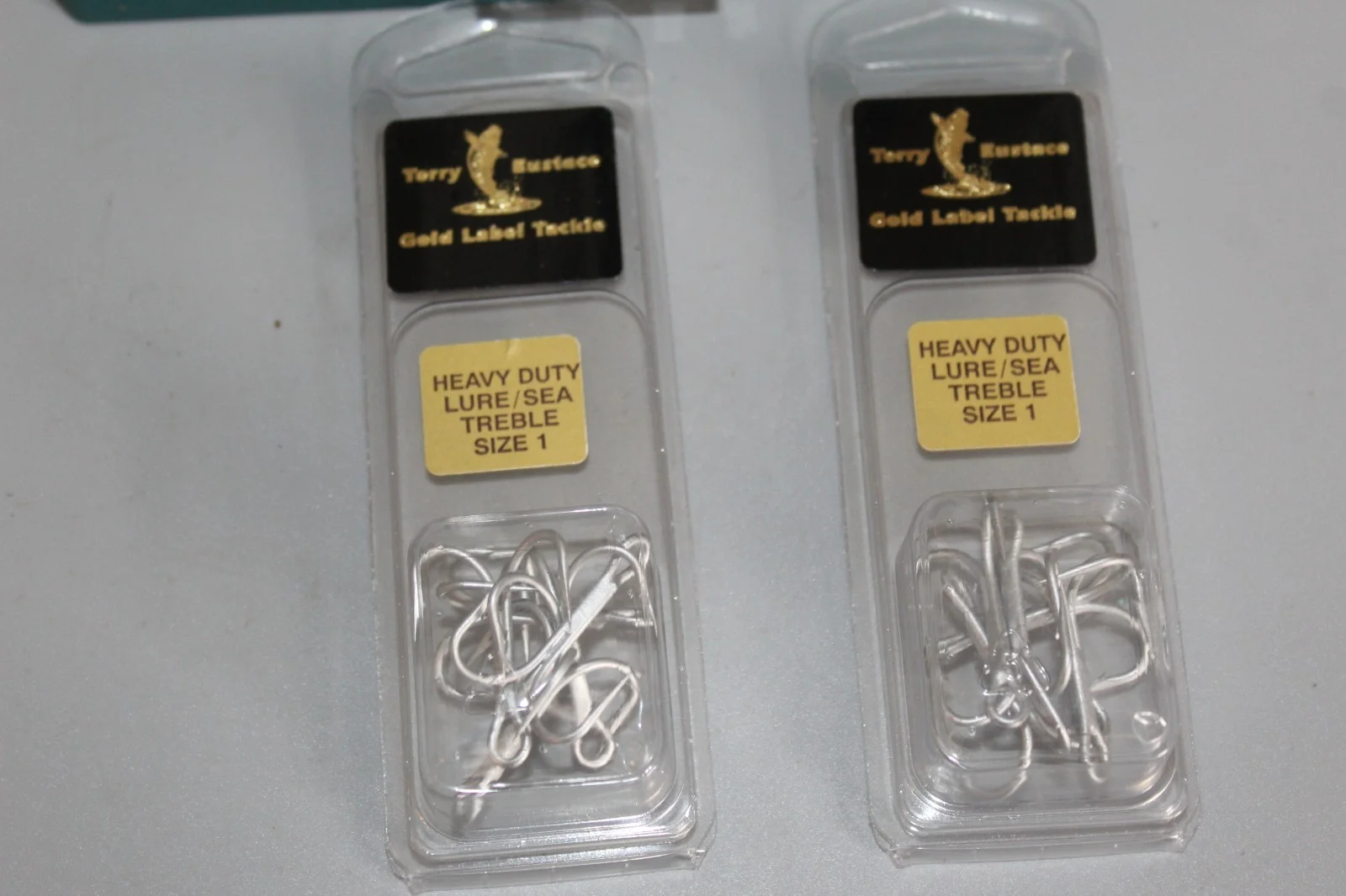 2 PACKS TERRY EUSTICE HEAVY DUTY LURE SEA TREBLE HOOKS # 1 & BOX OF LARGE HOOKS