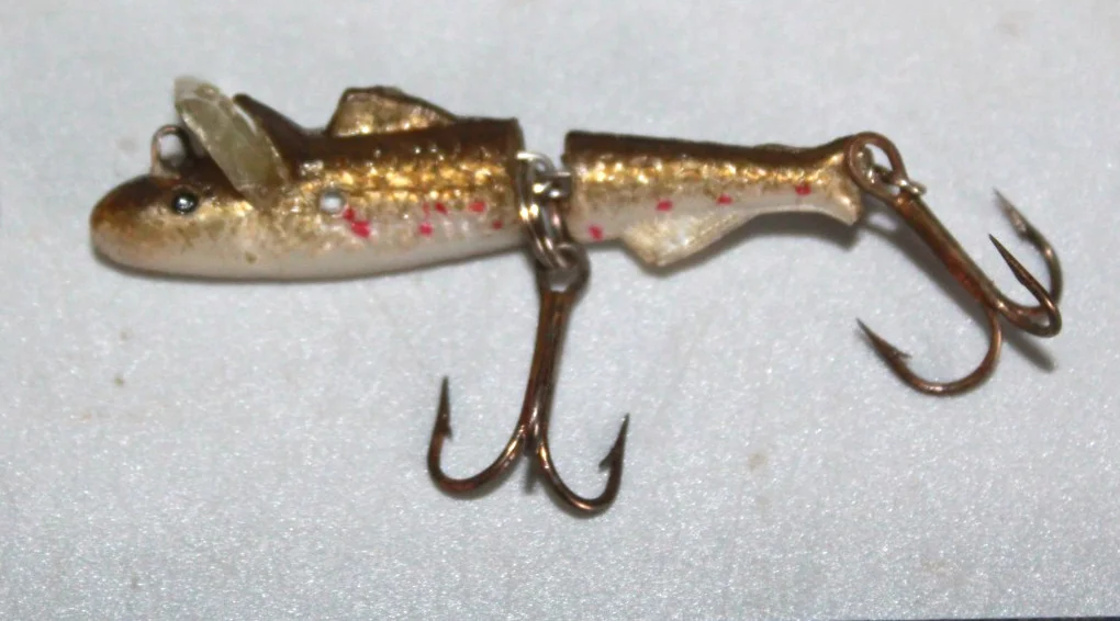 RARE VINTAGE LURES 2x FRANCE JOINTED MINNOWS 1 SMALL LURE & SPINNER TYPE MINNOW2 France Depose jointed minnows, 1 small lure with single hook and a spinner type minnow lure. All Vintage celluloid / plasticused conditionPlease look at the photos as these form part of the description. Use the zoom to look closely at the item showing the condition of the item before bidding. Item shown in photos is the item for sale.All items unless stated are antique or vintage and will therefore by definition not be in new condition and may have signs of age or use, please be assured that we always endeavour to offer the most accurate description possible of the item's condition with illustrative photographs, please use zoom to take a closer look at photographs. Fishing reels and rods may have faults / damage that we may have missed. Any major faults will be listed. Some minor surface marks or flaws etc consistent with age and use and manufacture etc may not be mentioned unless they cause a problem on the whole to the item. If you need further information on condition please email us.We do combine postage costs but please wait for a combined invoice to be sent before paying for multiple purchases. We do not allow collection in person. PLEASE READPaymentPayment accepted by Ebay paymentsPostageGoods are posted upon cleared payment. Postage Postal charges include a small charge for packing materials. We post within three working days of cleared payment, Proof of posting is always obtained, Overseas buyers please allow for a reasonable time for your package to arrive as airmail delivery times can vary from country to country.UK Postage & packaging will be combined to keep costs down wherever possible.In the event of any problems please let us know as problems can nearly always be solved. Please contact us through ebay messages.ReturnsAt auction all sales are final, although we do offer, in compliance with distance selling regulations, a 14 day returns policy for items which have been inaccurately described or purchased Buy it now or via our ebay shop. Any problems please report them within 3 days of receiving the item.If, on receipt of an item, you are not entirely satisfied, a full refund is available on safe return of the item to us (excluding postage costs). Items must be returned in original packaging and sent by recorded / trackable postWe do not offer partial refunds. No returns will be accepted without prior approval and agreement. Return postage will not be refunded unless agreed prior to the return.FeedbackPlease leave feedback upon receipt of item so that we know you have received your item and we will leave feedback in return. If there is a problem please contact us first as problems can usually be resolved.