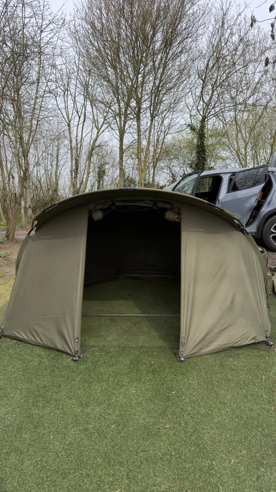 Trakker Cayman Pro 1 Man Fishing Bivvy with detachable groundsheet, carry case, poles and pegs. Also comes with plastic see through front door. Ideal for new anglers on a budget looking for a good quality bivvy. Collection only.