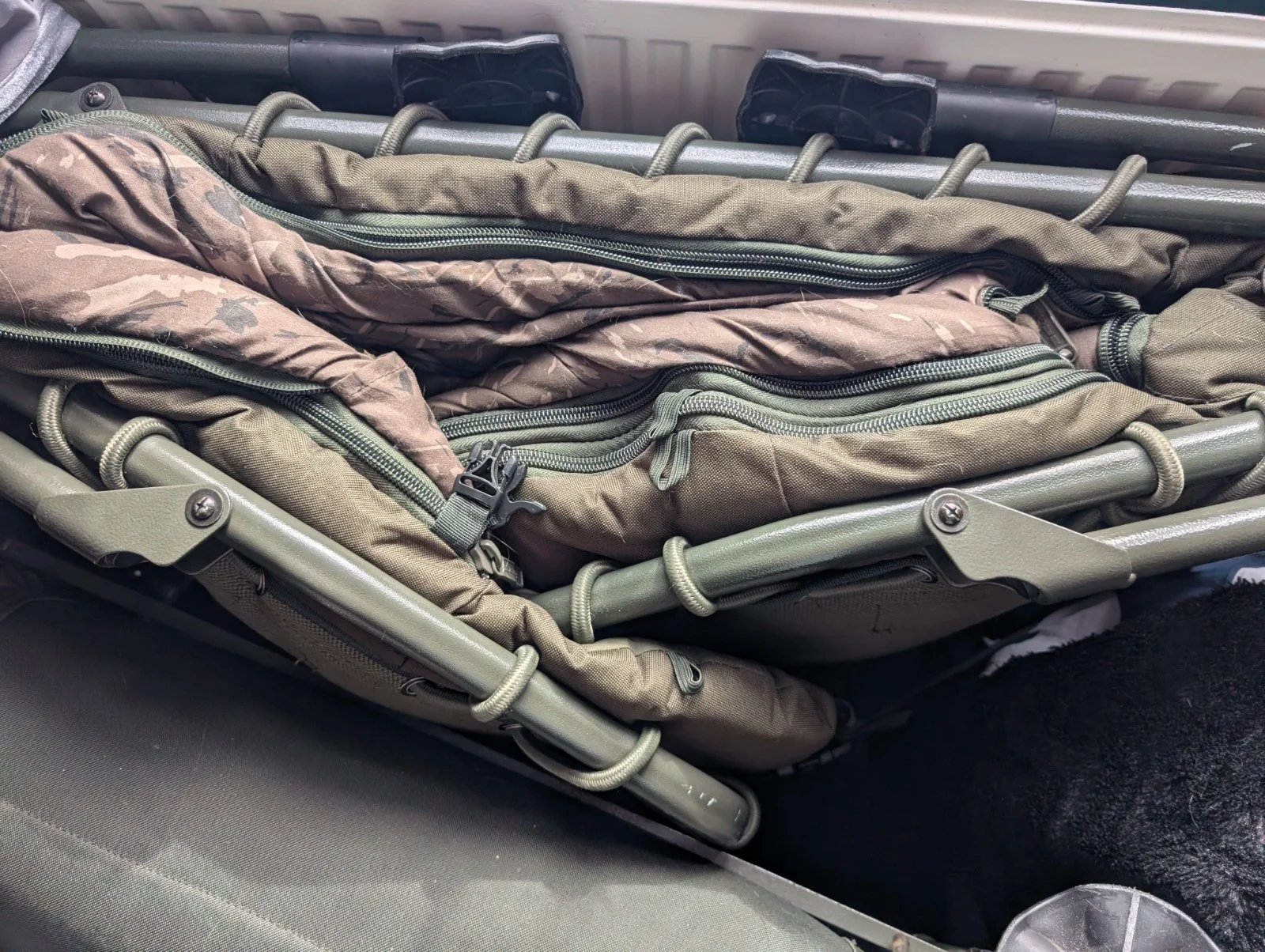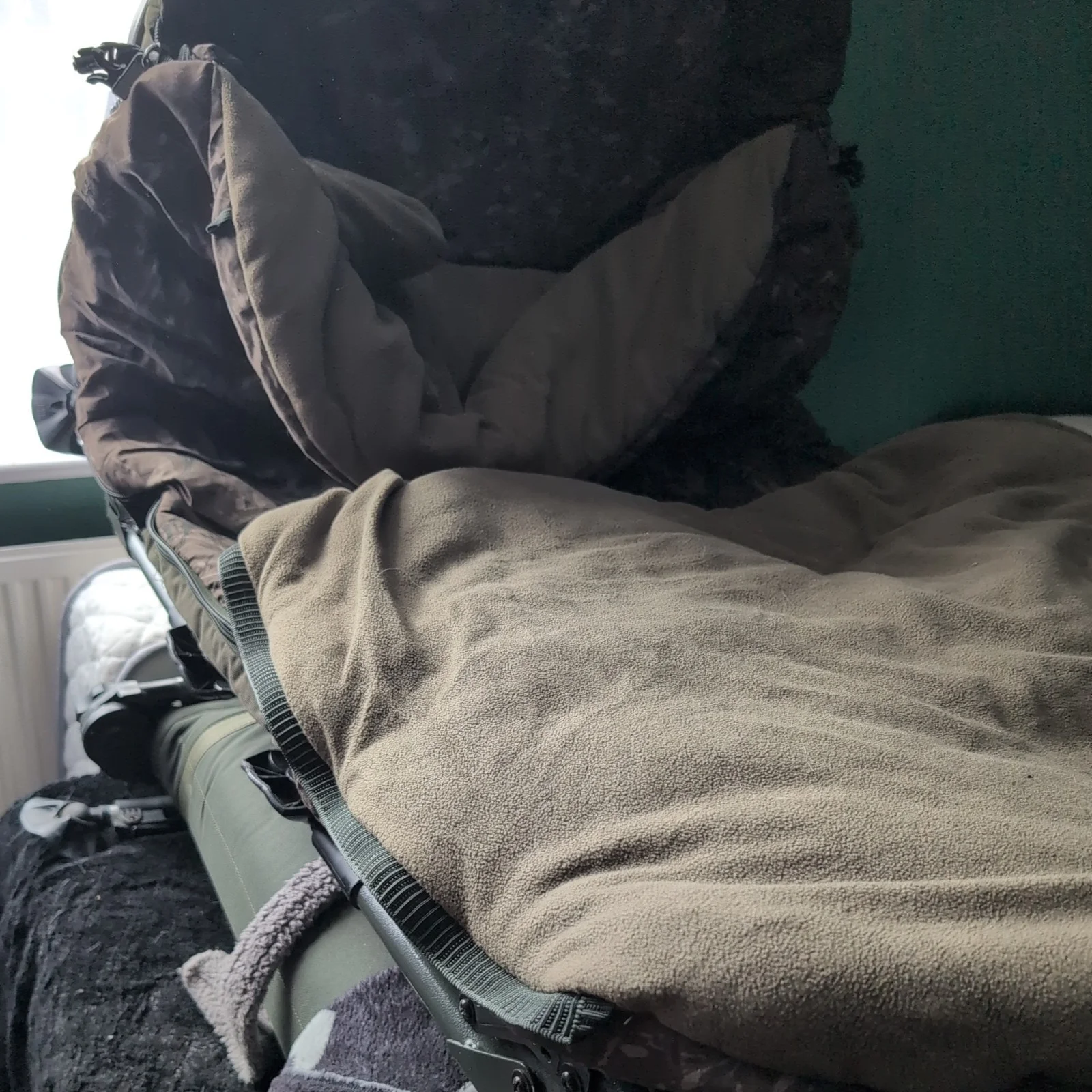 The Nash Bedchair is a fully assembled carp bedchair designed for unisex adults. Made from durable aluminium material, this adjustable chair is 60 cm in height, 100 cm in length, and 96 cm in width. The green colour adds a stylish touch to this essential piece of anglers' equipment, providing a comfortable and convenient seating option for fishing enthusiasts.2 layered sleeping bag.