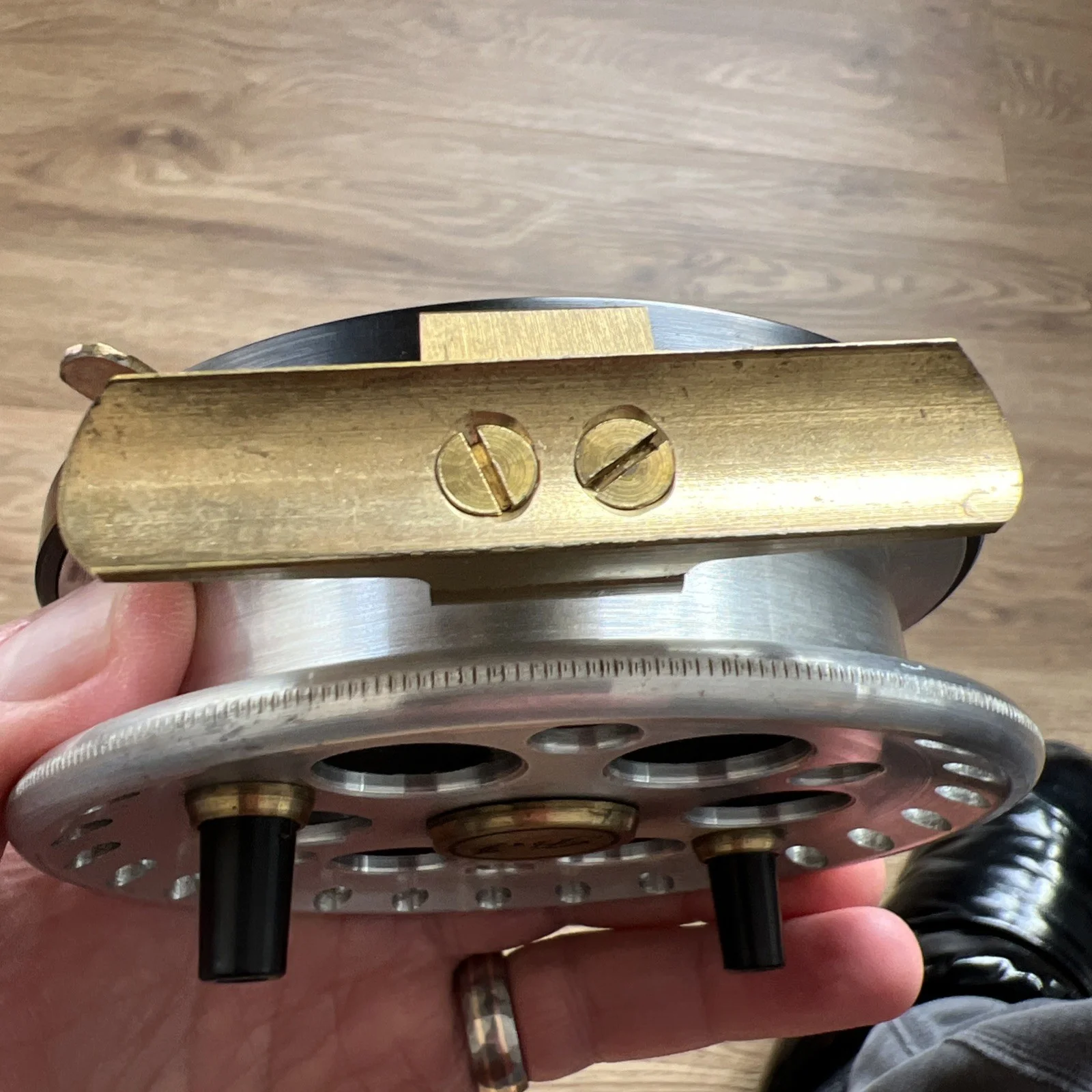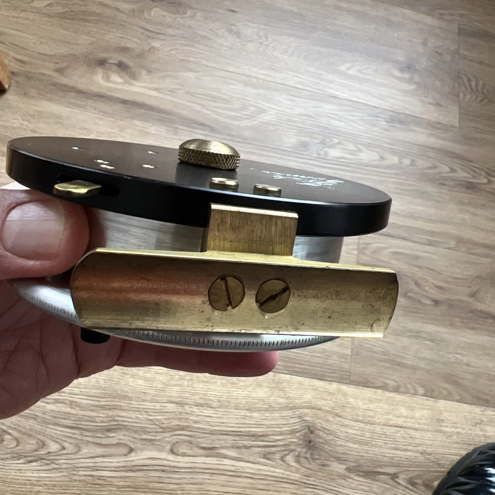 A beautiful and rare Bob James Centrepin, purchased in the 1990’sCant remember but I think Youngs made it, very similar to the Dave Swallow MK1 or the original Arnold Kingpin.As you can see its in very good used condition for the age. Spins very well with no wobble.Nice lightly knurled rim to stop those bigguns. An absolutely fantastic iconic reel and you don’t see many around.I always want to list my items accurately, so you can bid in confidence.I used this reel for river fishing for barbell and big chub, and also to long trot the crease in heavy winter flows for graying.It could also be used for pike or carp.As i said It spins freely and true, with a good strong ratchet. Now for the technical details.This pin has a floating shaft, meaning it moves up and down inside the drum. The reason for this is the nut at the back can be used as a tensioner to slow the reel down if ledgering, or float fishing in a heavy flow.If you take the back of the reel, you must pull the screw section of the shaft fully up through the hole and tighten the nut by pulling it upward while screwing it down, if you don’t the reel wont run correctly. The nut should not be screwed to tightly or you will engage the tensioner,Any other questions please ask.I am having a big clear out of my barbel pins, and a couple of rods, so please keep an eye out. Happy bidding 😎