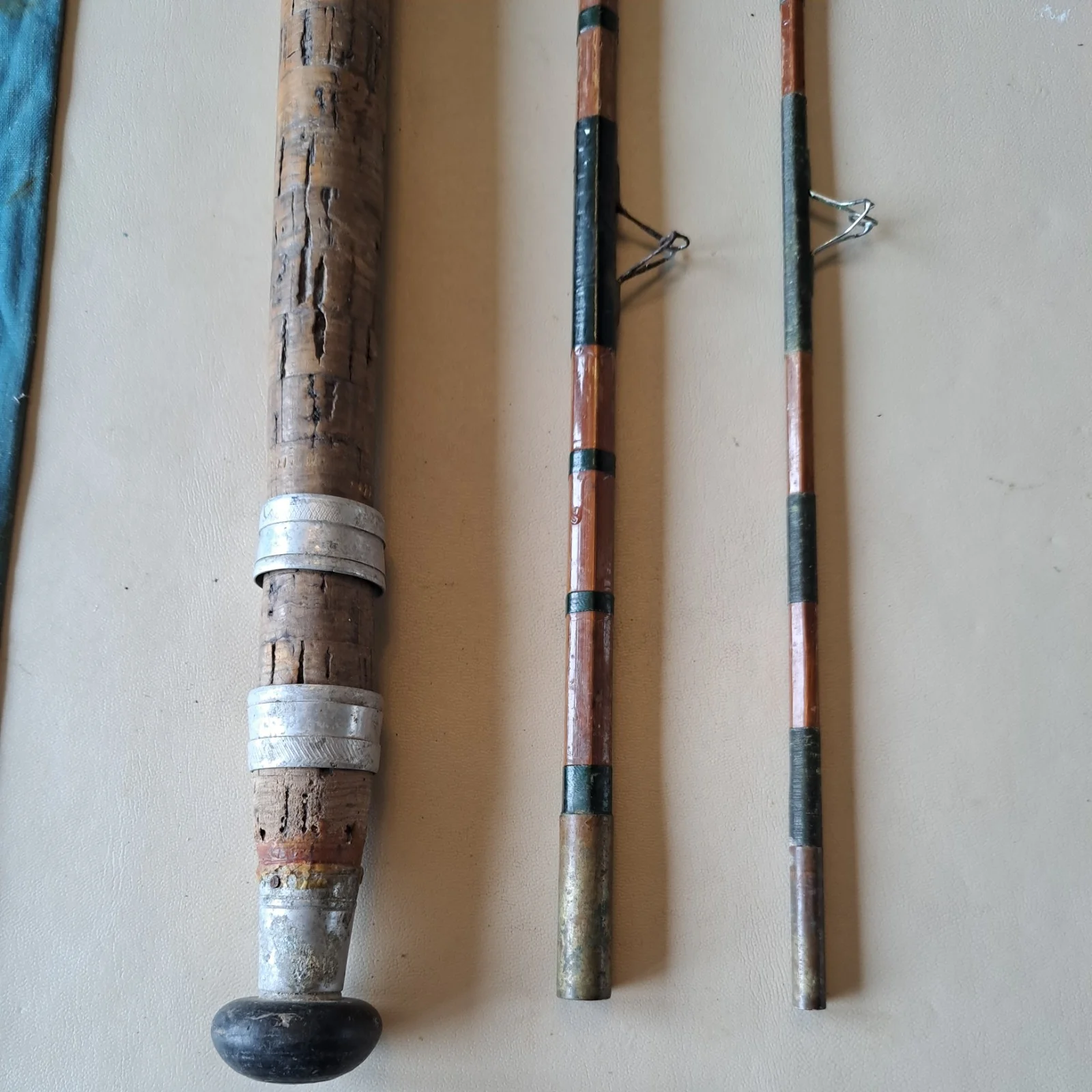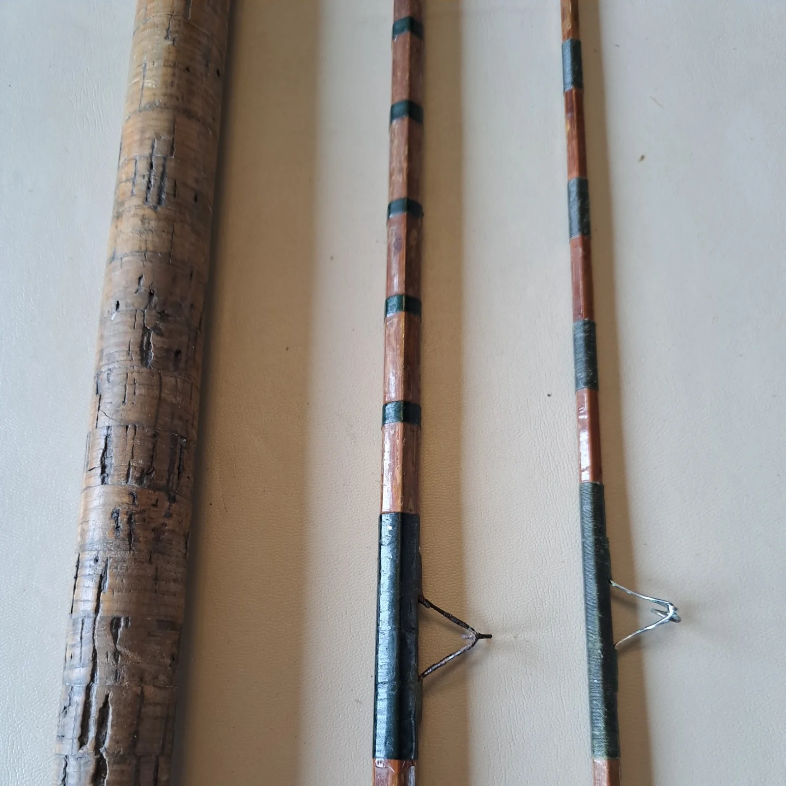 The Split Cane fishing rod is a vintage piece with a 3-piece design, making it convenient for transportation and storage. Measuring 12 ft in length, this traditional rod features a threaded tip ring for easy assembly and use. Made from high-quality cane, it provides a classic and elegant look while also being durable and sturdy for a range of fishing experiences. Perfect for fishing enthusiasts looking for a timeless and reliable piece of equipment. Some of the rings will need replacement.