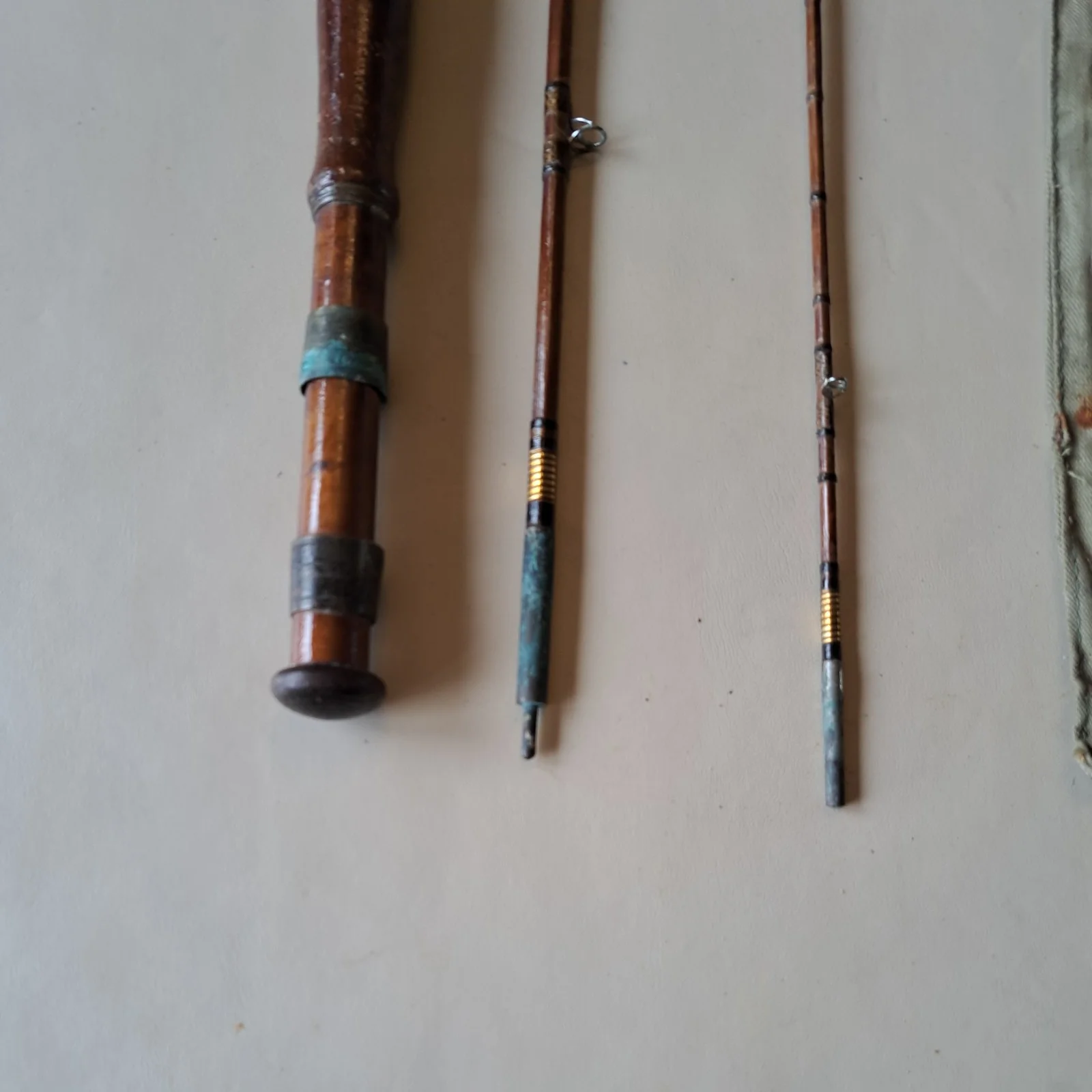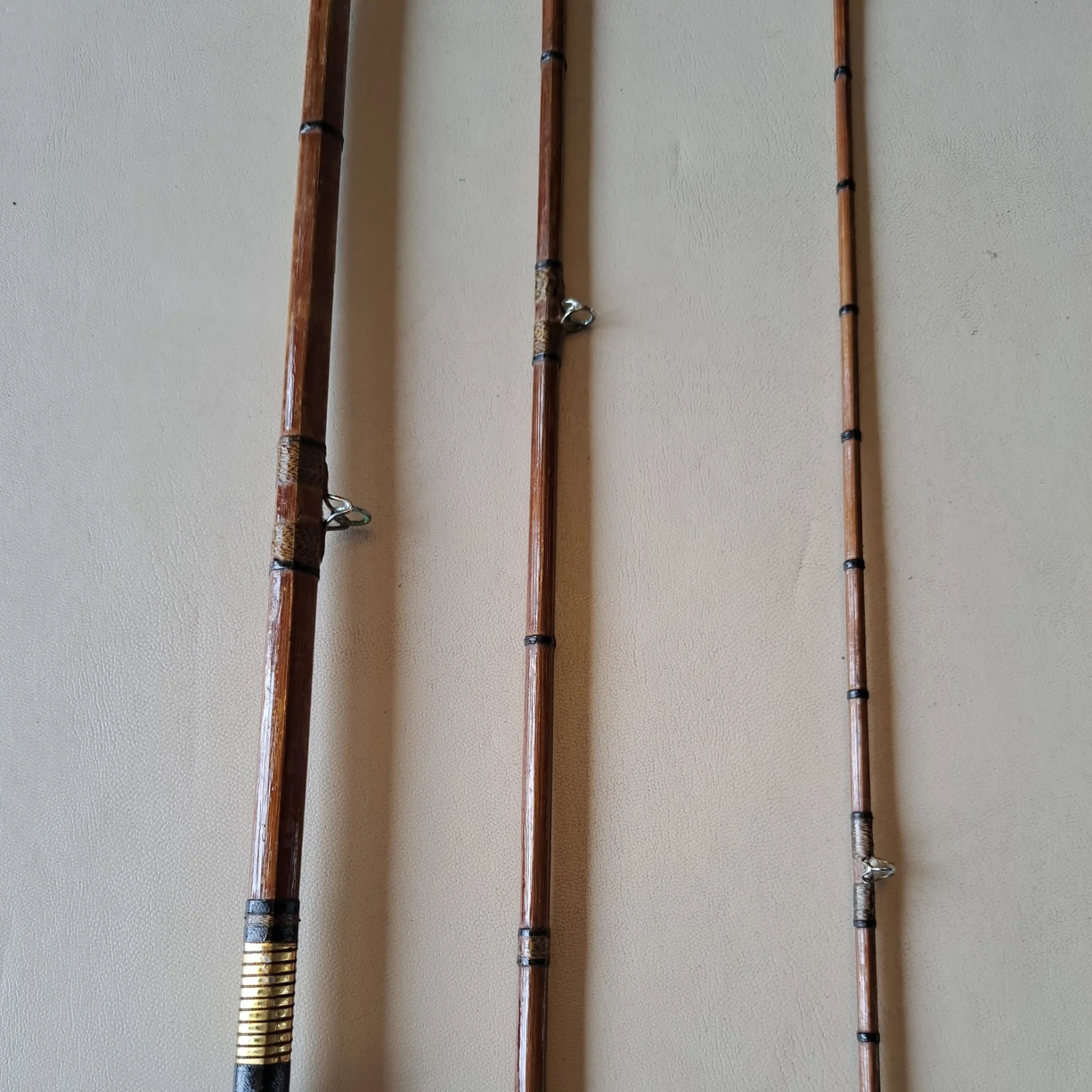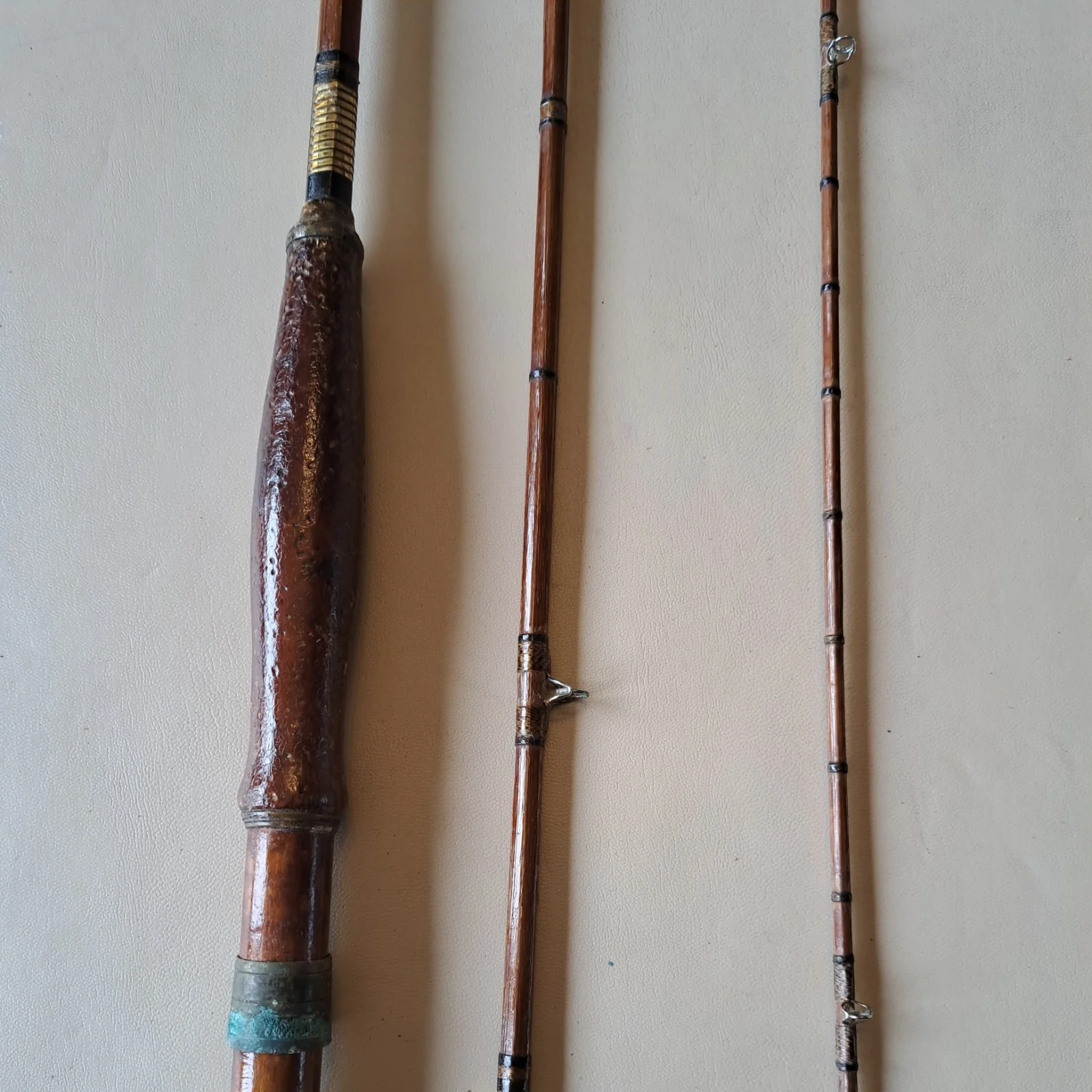 This vintage split cane fly rod boasts a 9 ft length and is crafted in three pieces, making it easy to transport and store. The varnished handle adds a touch of elegance, while the gold detailing gives it a luxurious and classic look. Perfect for fishing enthusiasts looking to add a touch of old-school charm to their collection, this rod is sure to enhance any fishing experience with its unique design and quality materials.The rod needs a good clean and fettle.