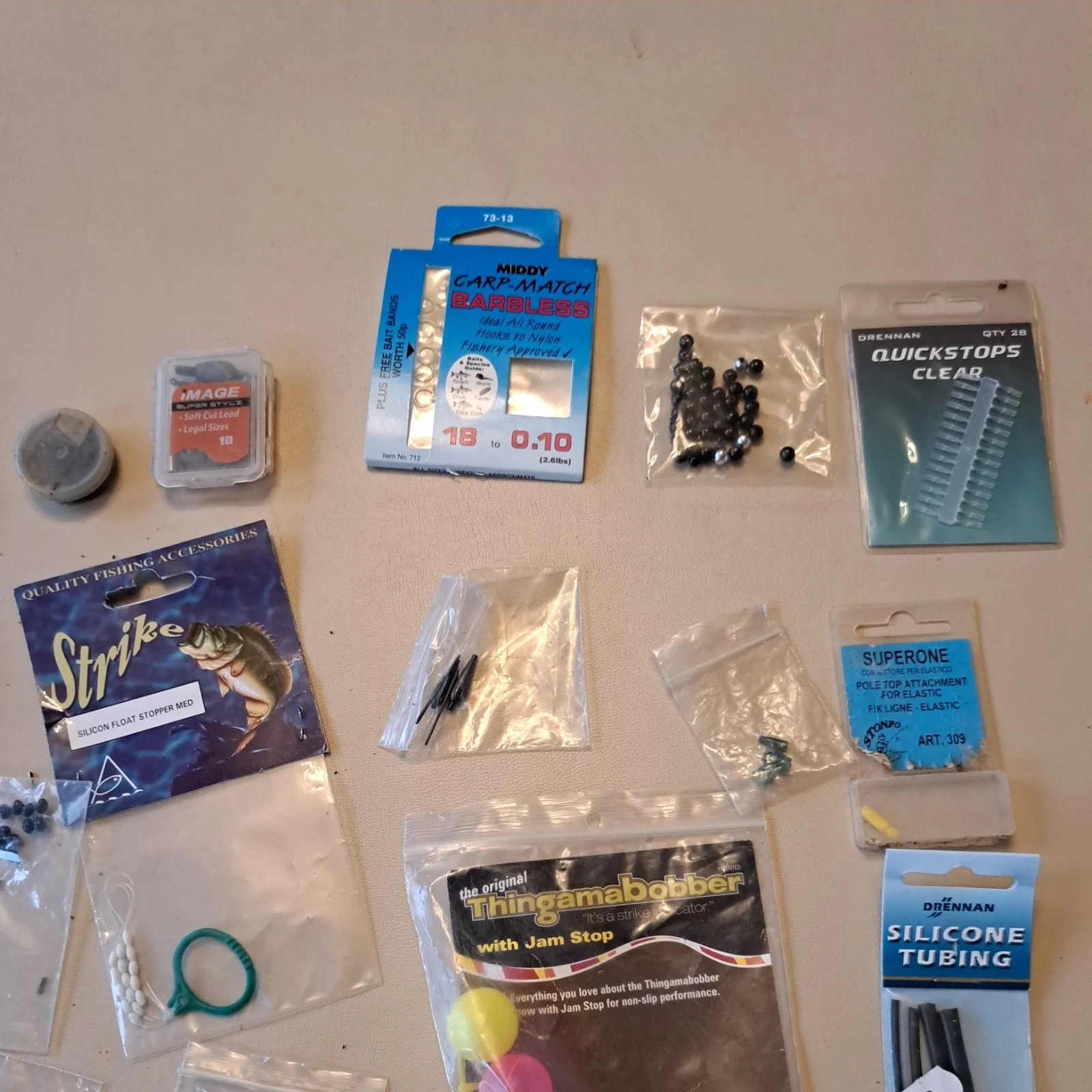 This product is a collection of mixed fishing terminal gear, including some packets that are still unopened. It is perfect for anglers looking to expand their tackle box with a variety of essential gear for different fishing situations. From hooks to swivels to weights, this assortment of terminal tackle is sure to help enhance your fishing experience and improve your chances of a successful catch.