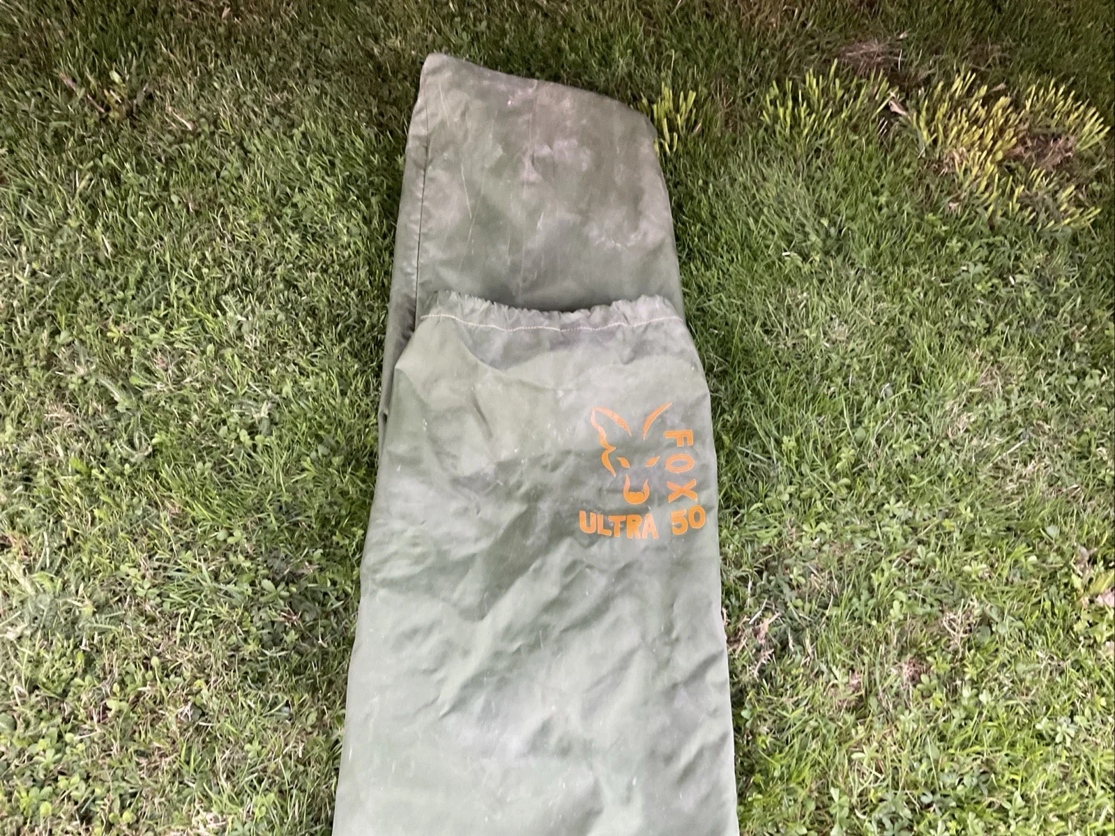 The Fox Fishing Bivvy is a high-quality, one-person shelter designed for fishing enthusiasts. Made from waterproof polyester material with a rating of 1000-1500 mm, this bivvy is both durable and reliable. With a single door for easy access and a compact design, it is perfect for outdoor adventures in various weather conditions. The green colour adds a touch of camouflage to blend in with the natural surroundings, making it an ideal choice for any fishing trip.For sale fox ultra 50 fishing shelter bivvyIn great used condition vintage item Does have couple of tiny pin holes see photo (just want to be 100% honest)Comes with pegs and bag Any questions please askCollection only from sg15 Bedfordshire