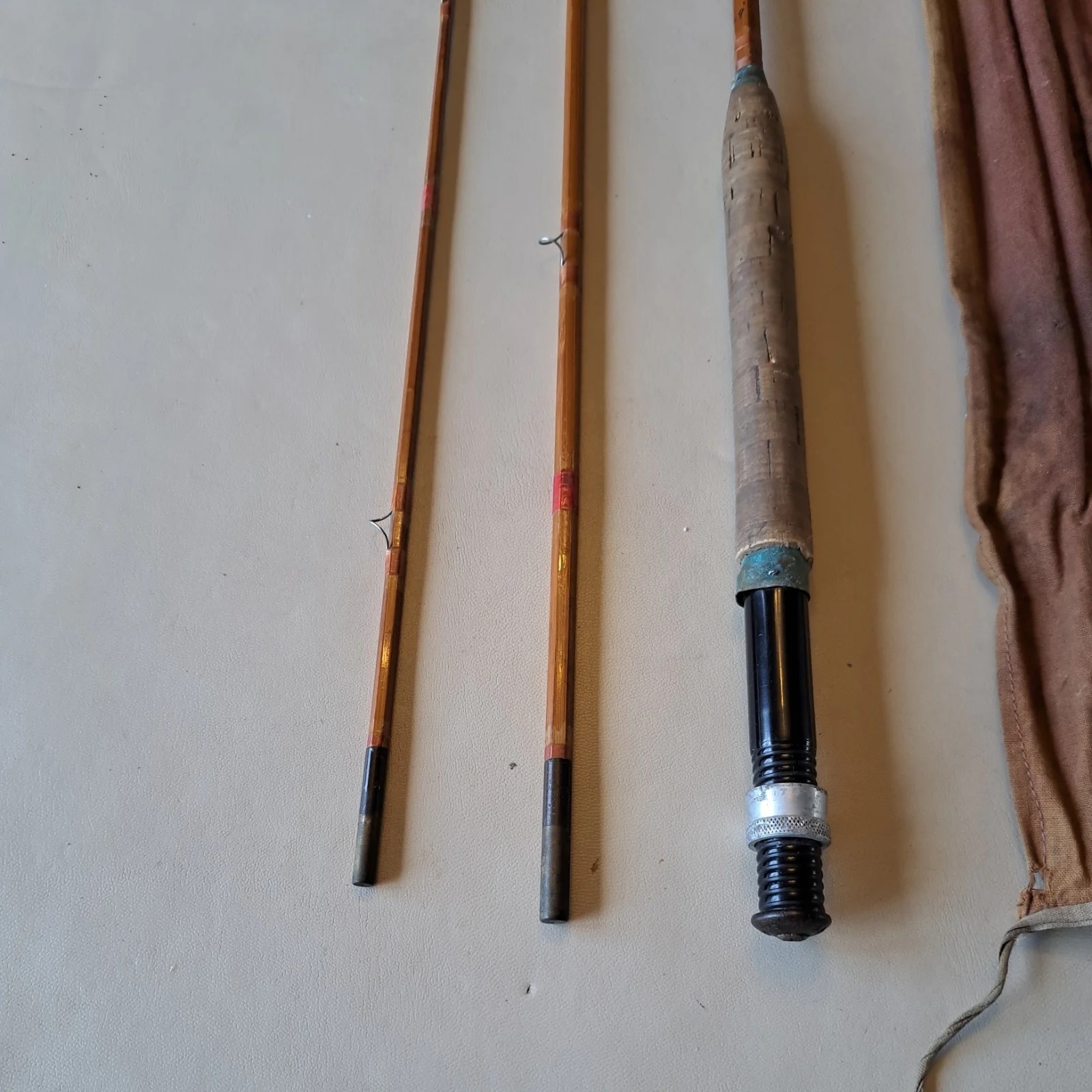 The Vintage Arjon Streamfly split cane fly rod is a classic piece of sporting equipment for fishing enthusiasts. Made with a traditional cane shaft, this 9ft 3 piece rod comes with its original bag, adding to its vintage charm. Perfect for those who appreciate the craftsmanship and history of classic fishing rods, this split cane fly rod is sure to provide a unique and authentic fishing experience.