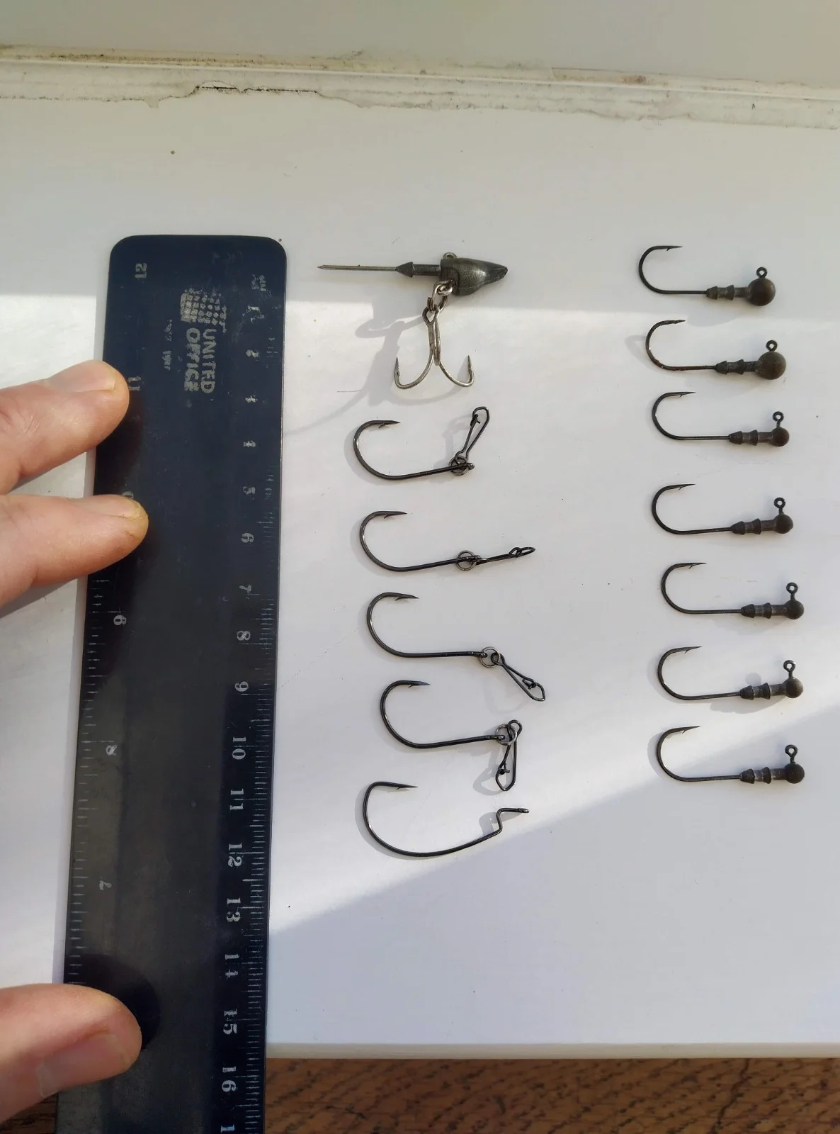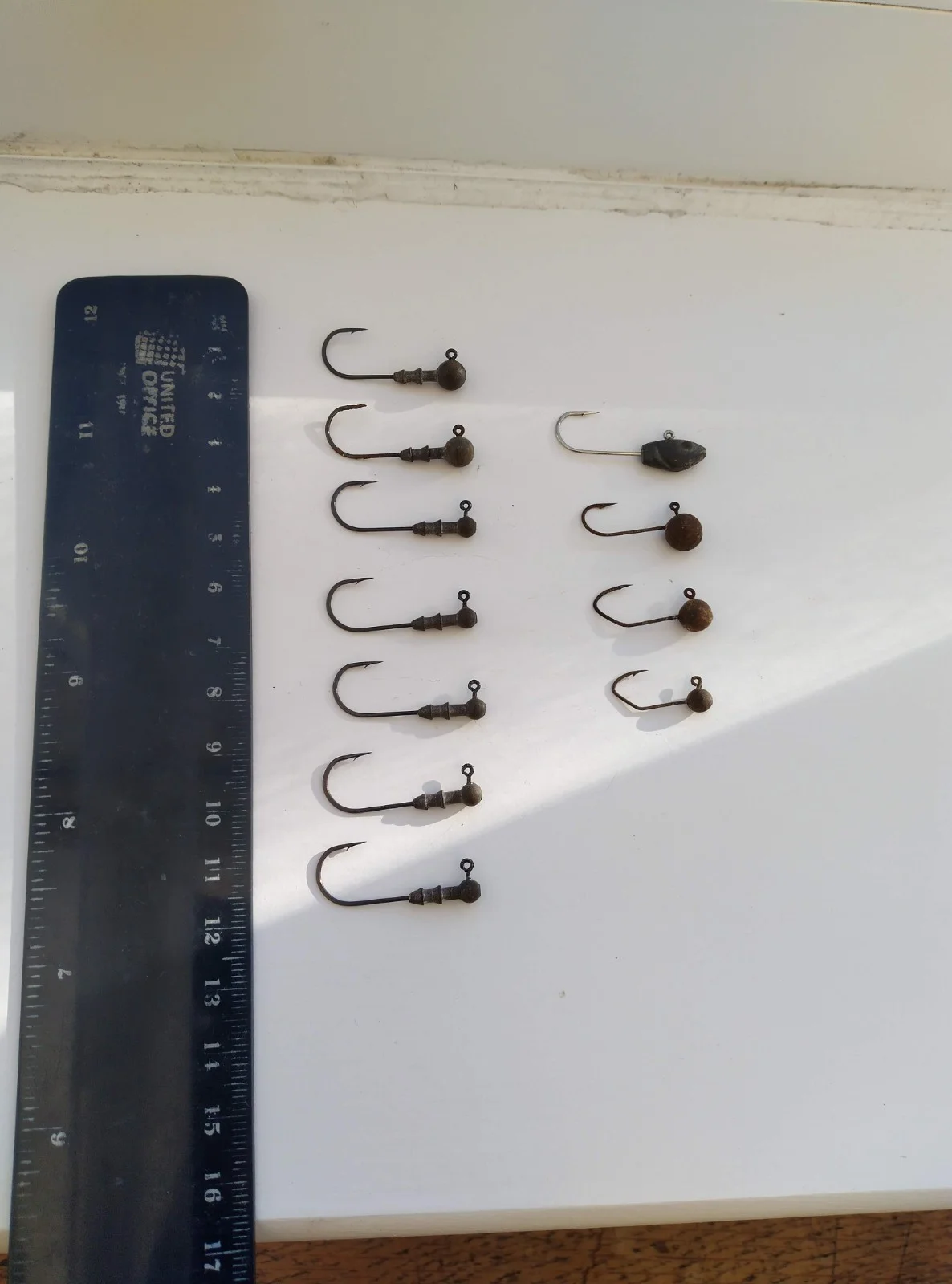 Micro jig head and hook mixed collection. Brands include Decoy VJ-30, Eco Gear and other generics. Most are unused but listed as used as they have been stored for some time out of packets.