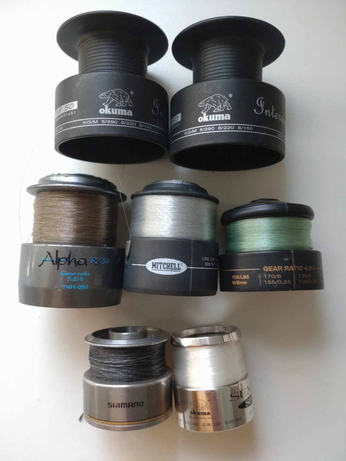 Various Fishing Reel Spare Spools - Qty -7.2 x Okuma Interceptor IBF 501 x Alpha RX 501 x Mitchell Avocet 11 S400R1 x Kingfisher 300X1 x Shimano Sidestab 2500RE1 x Okuma Semper SF320Spools as shown in the photos. What you see is what you get.Any questions just message me.