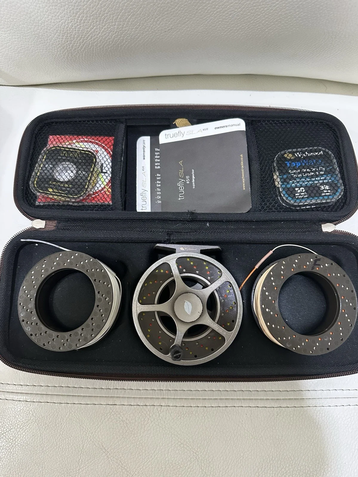 The reel has a few usage marks but clean. Bought this second hand couple of years ago so don’t really know the history or the make of the lines. Two lines are floating and the yellow and black is a sink tip. Clicker is not engaged don’t know if it should have one or the way to engage it. Happy bidding