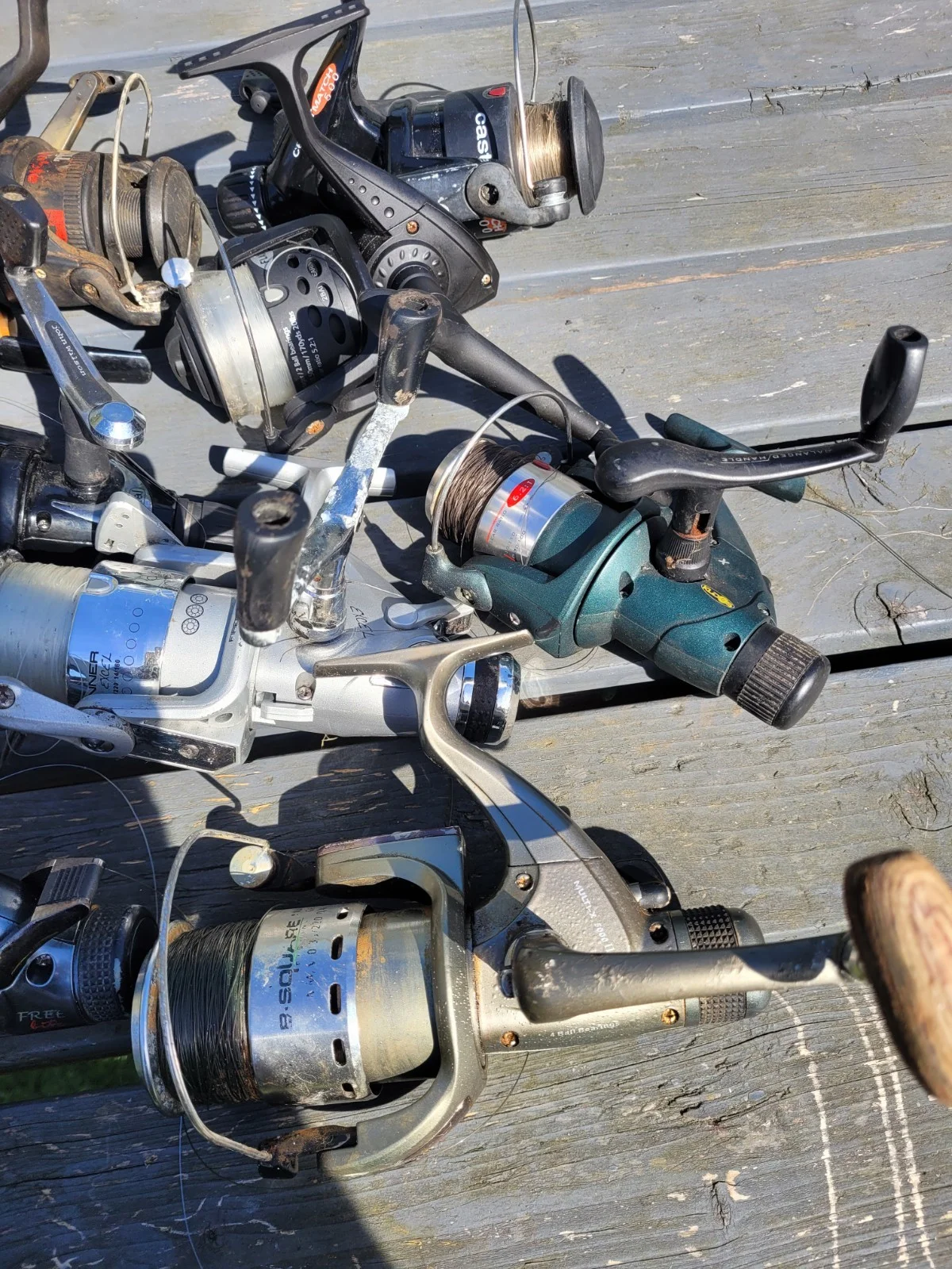 job lot of fishing reels sold as spares or repair how ever all spin and function two have handles missing all haven't been used for a long time maybe of use to someone