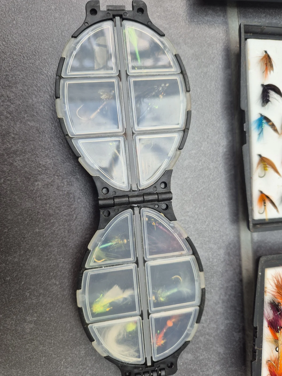 Fly Fishing Bag Full Of Accessories, Fly Boxes With Flies Including Richard Wheatley & Normark Fly Boxes, Greys Fly Reel & Unknown Fly Reel, Leaders, Tipets.