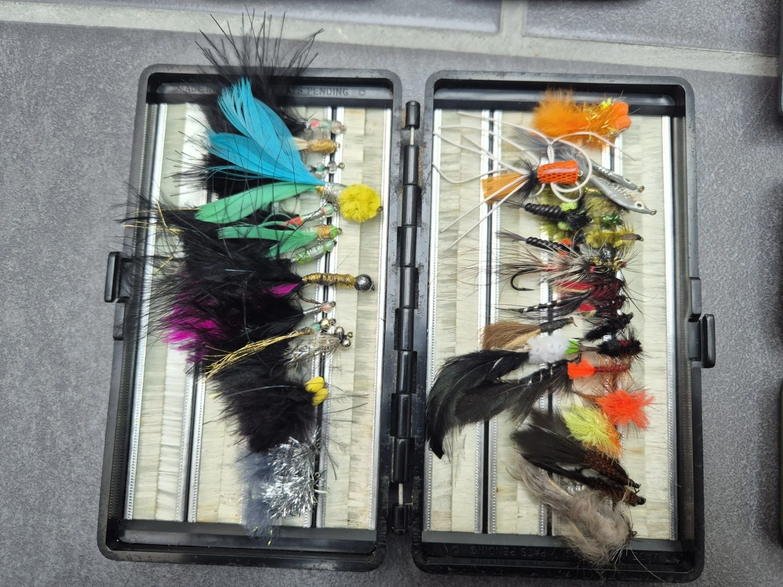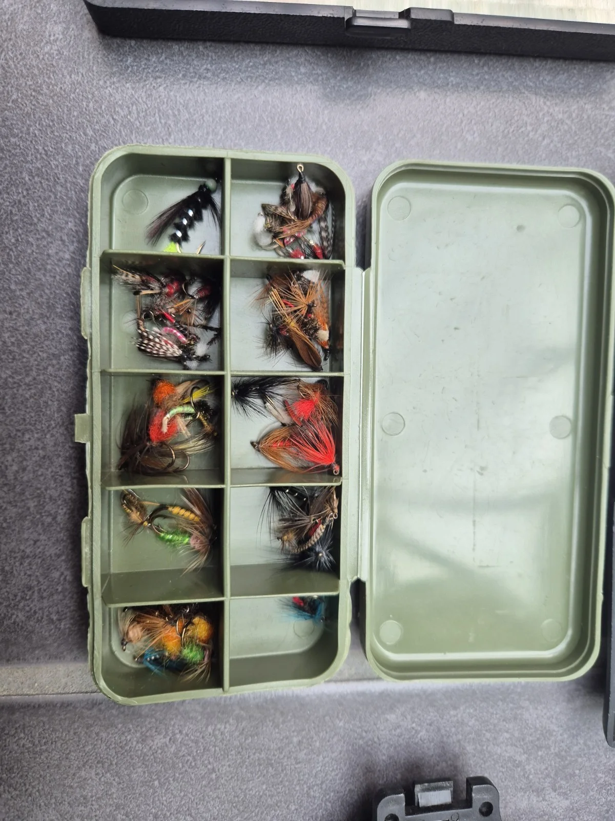 Fly Fishing Bag Full Of Accessories, Flies, Fly Reels, Leaders