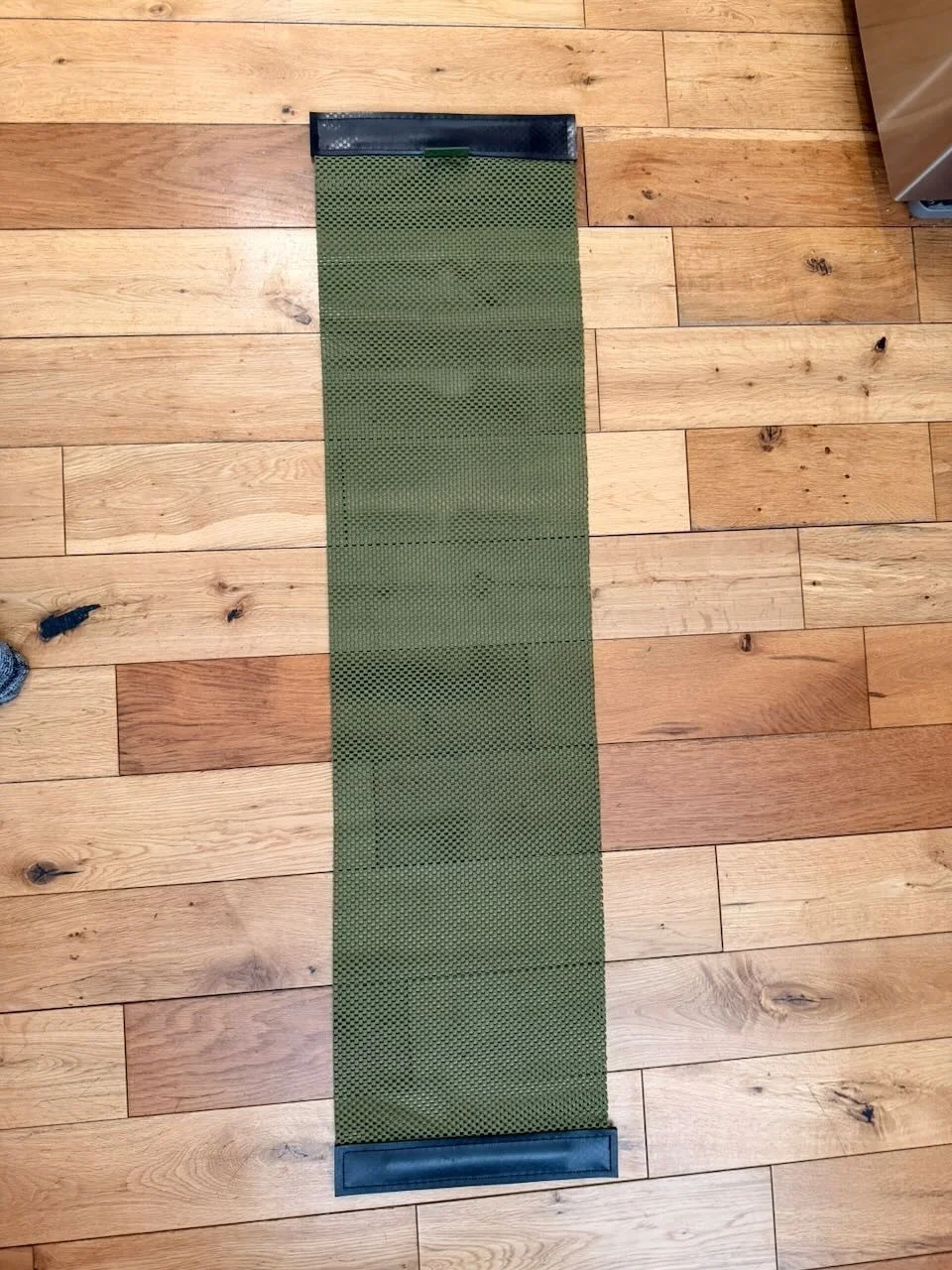 A la Carp Bivvy top work mat and magnetic hook - The auction is for the mat i cant find theese online anymore but a very useful bit of kit, I have used it but is in perfect condition it came with a little bag but i cant find it anymore.The description below is from a Carpology review I have also added a you tube clip of product.Selling a lot of my gear as i now have mobility issues and need to lighten the load, please see other items i will be listing over the next week or two. the matA La Carp Bivvy Top Work Mat is a product that sits on theroof of your bivvy and allows you to lay out essential tools and rig bits foreasy access when casting.I know that area of my bivvy well!Yep, that bit of fabric above the bivvy door is a classic place for anglers tobalance rig items as they lean their rods against the shelter. But I bet mostof us have watched in anguish as a bead or swivel has followed a crevice in thematerial and shot towards the ground never to be seen again!I have indeed!Well, then, this new Innovative product is designed to help you. A bit likethose grippy mats you can buy for the dashboard of your car, the Bivvy Top WorkMat is designed to keep things in place so they don’t roll away.What’s it made of?It’s constructed from a perforated PVC for a non-slip finish and has neoprenerubber ends that are cleverly weighted to keep the mat firmly in place on topof your bivvy above the door. It’s also fully waterproof so you won’t have tofetch it in every time there’s a shower.Does it have any other features?It certainly does. Incorporated in the design are four metal backing plates,which can be used to help hang magnetic bivvy lights and magnetic hooks atopposite ends.How big is the mat?It’s 30cm wide by 120cm across, giving you plenty of room to work from.