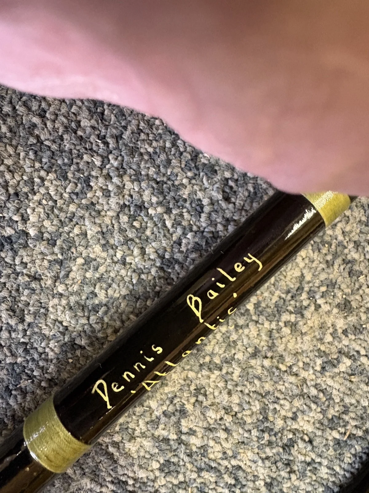 Excellent fishing rod in very good used condition.Dennis Bailey "Atlantic" Multi Purpose Fly rod.Black 2 pcs. 11ft AFTMA 10-12With Bag. Not sure if original.Basically as pictures