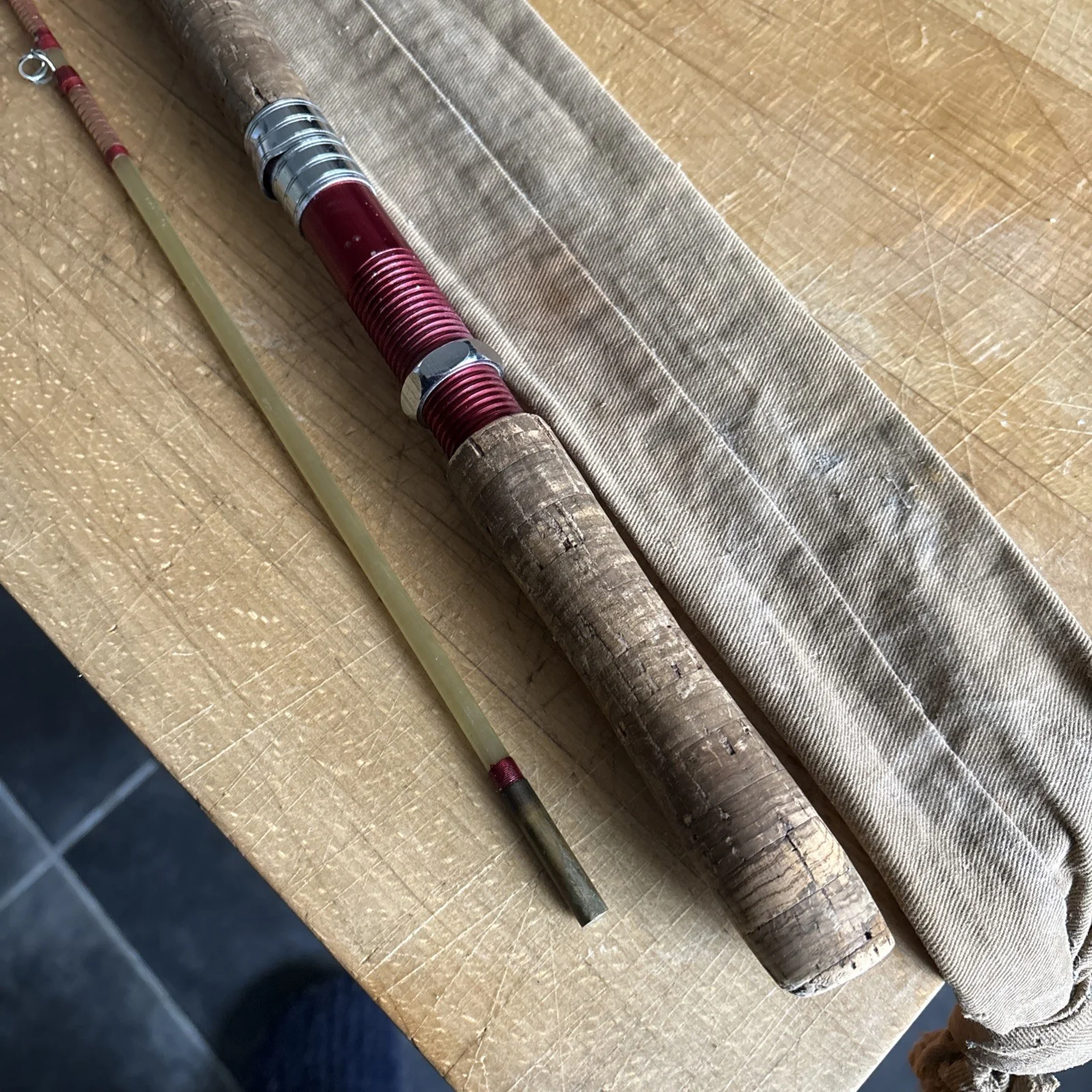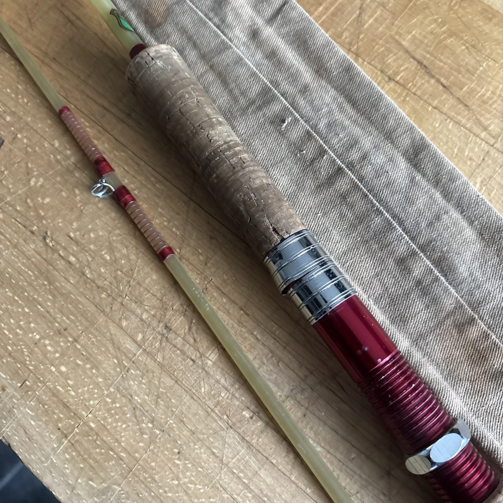 Lovely old solid glass fibre fishing rod by Tunbridge Wells Rods LtdApprox 7’ long 2 pcAs pics