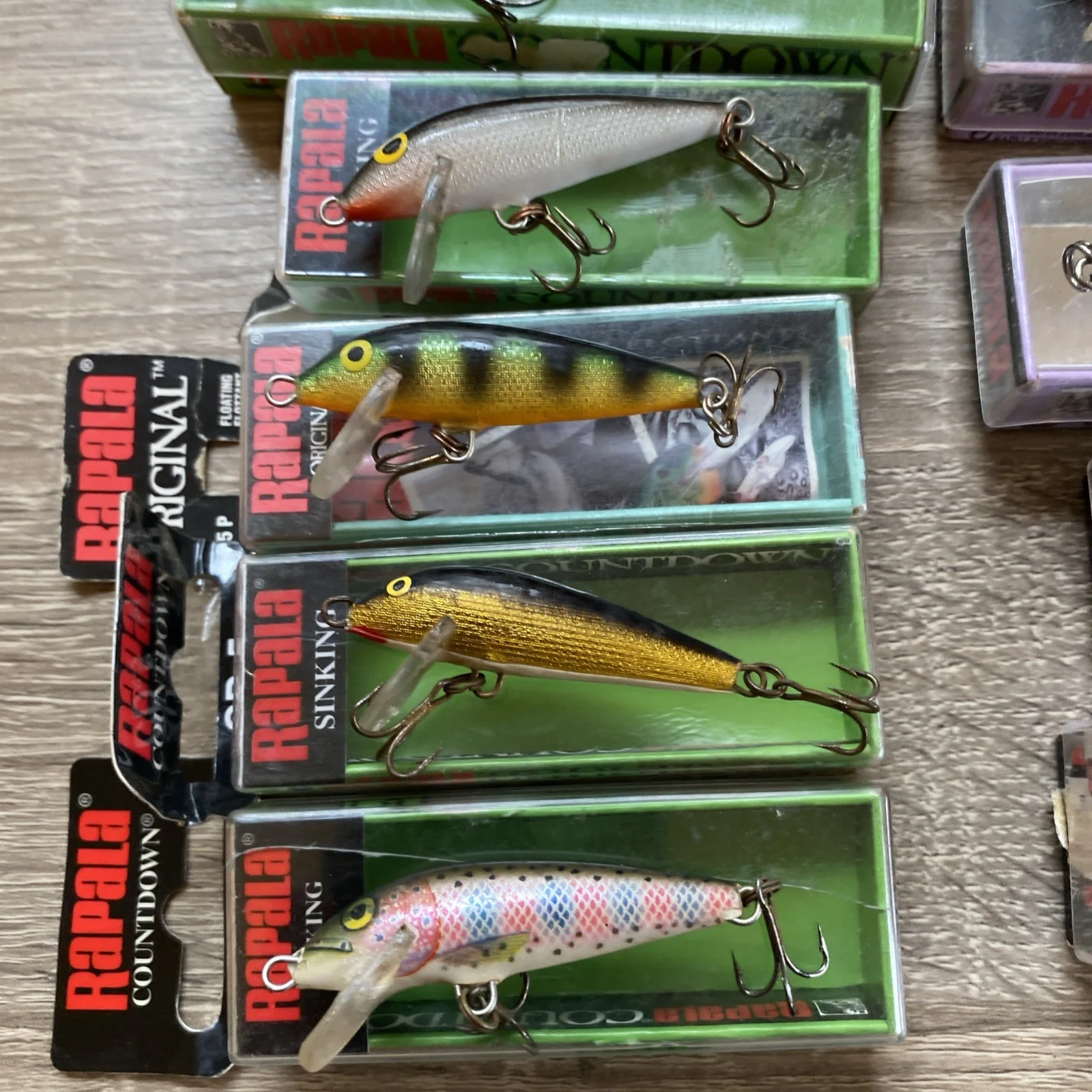 9 Rapala fishing lures 1 fire tiger cd9. 4 cd 5s. 4 rattling husky jerks .
