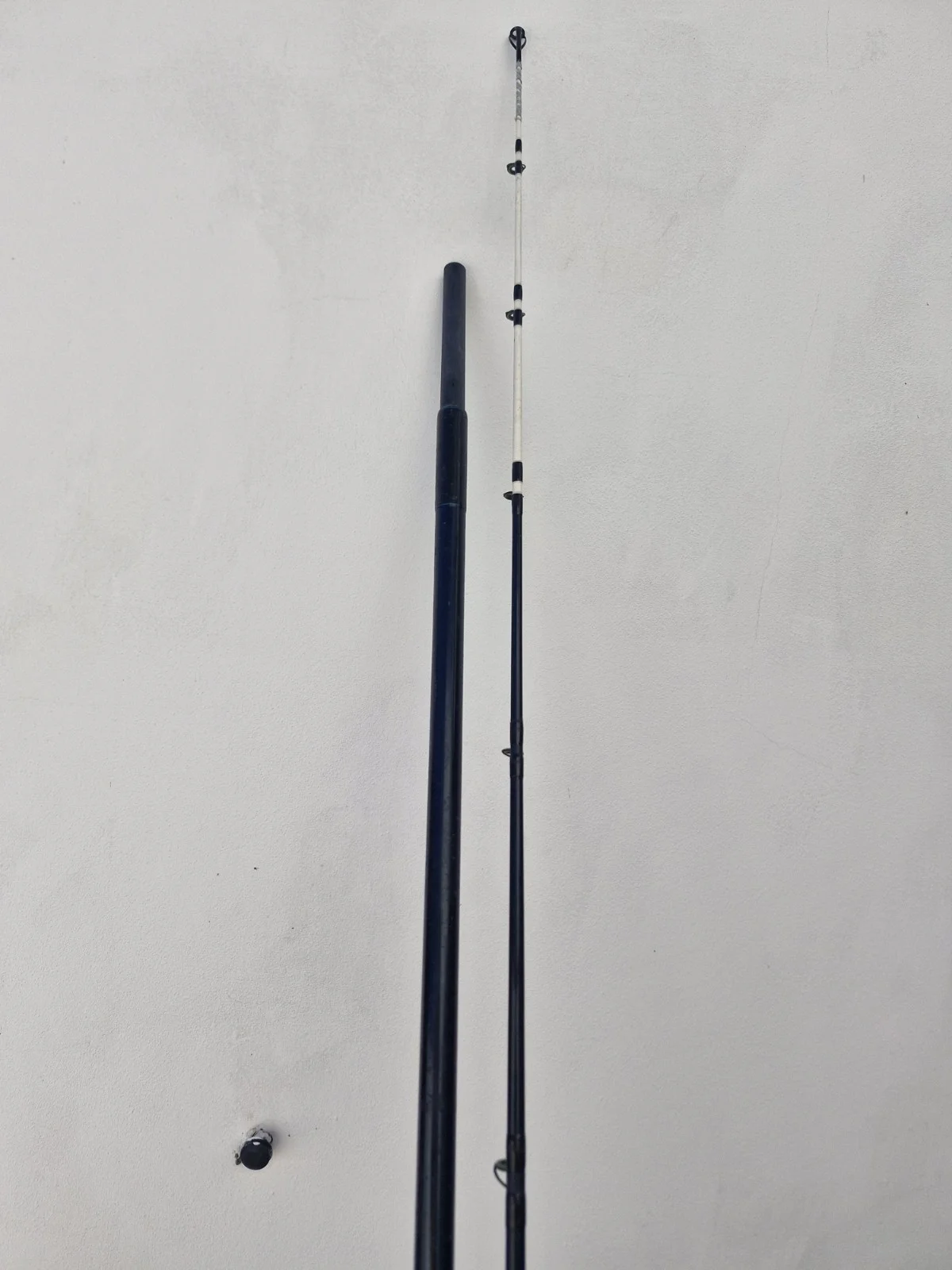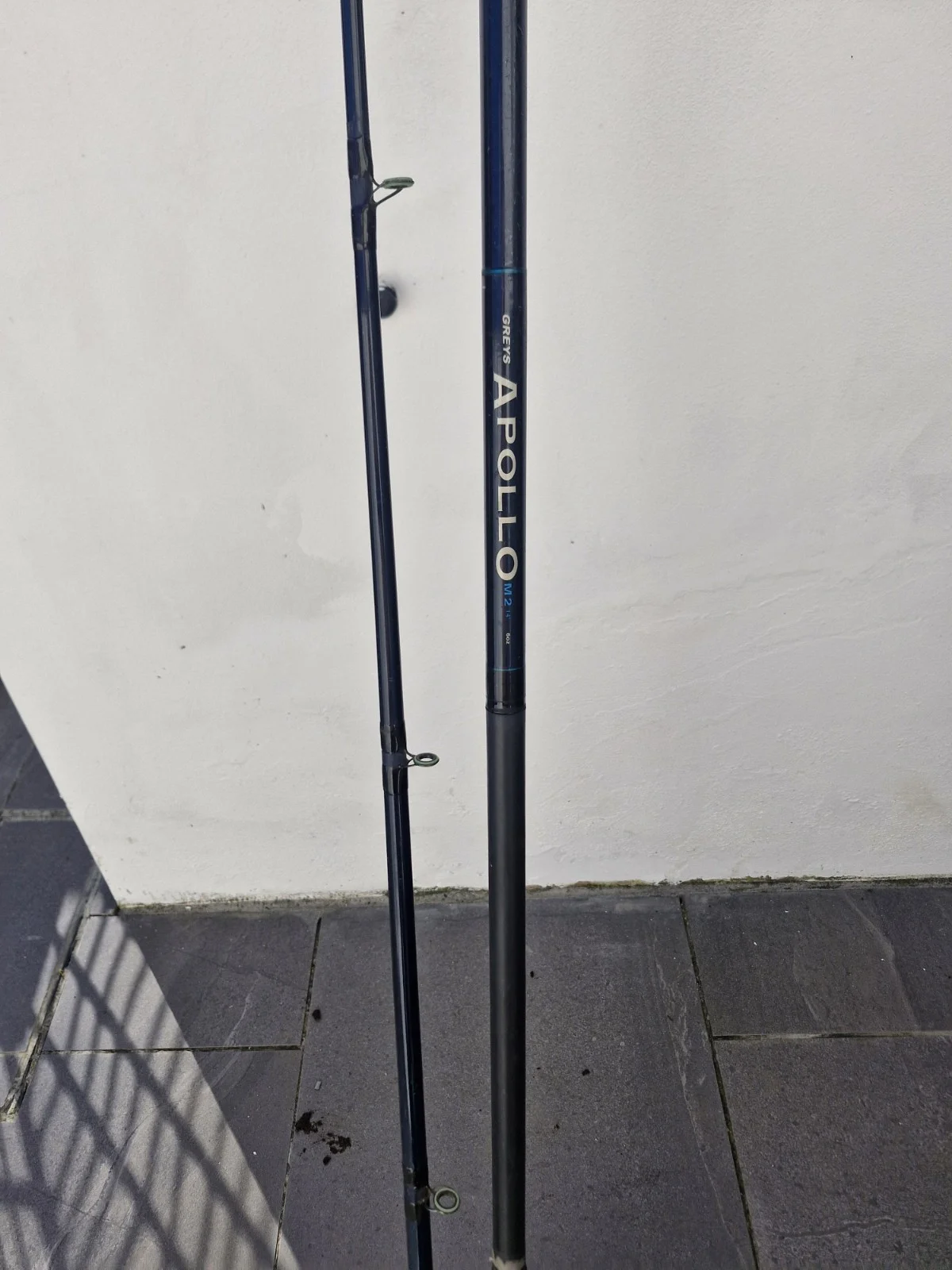 The Greys Apollo Mk2 6oz Beach Rods are high-quality carbon fibre surf rods designed for saltwater fishing. With a sleek grey color and a durable construction, these rods are perfect for unisex adults looking for reliable fishing equipment. They come in two pieces and feature a full grip style for maximum control while fishing. With a one-year manufacturer warranty, the Greys Apollo Mk2 rods offer peace of mind and performance for all your beach fishing adventures.matching pair, rung for multiplier.one may need a new top eye.