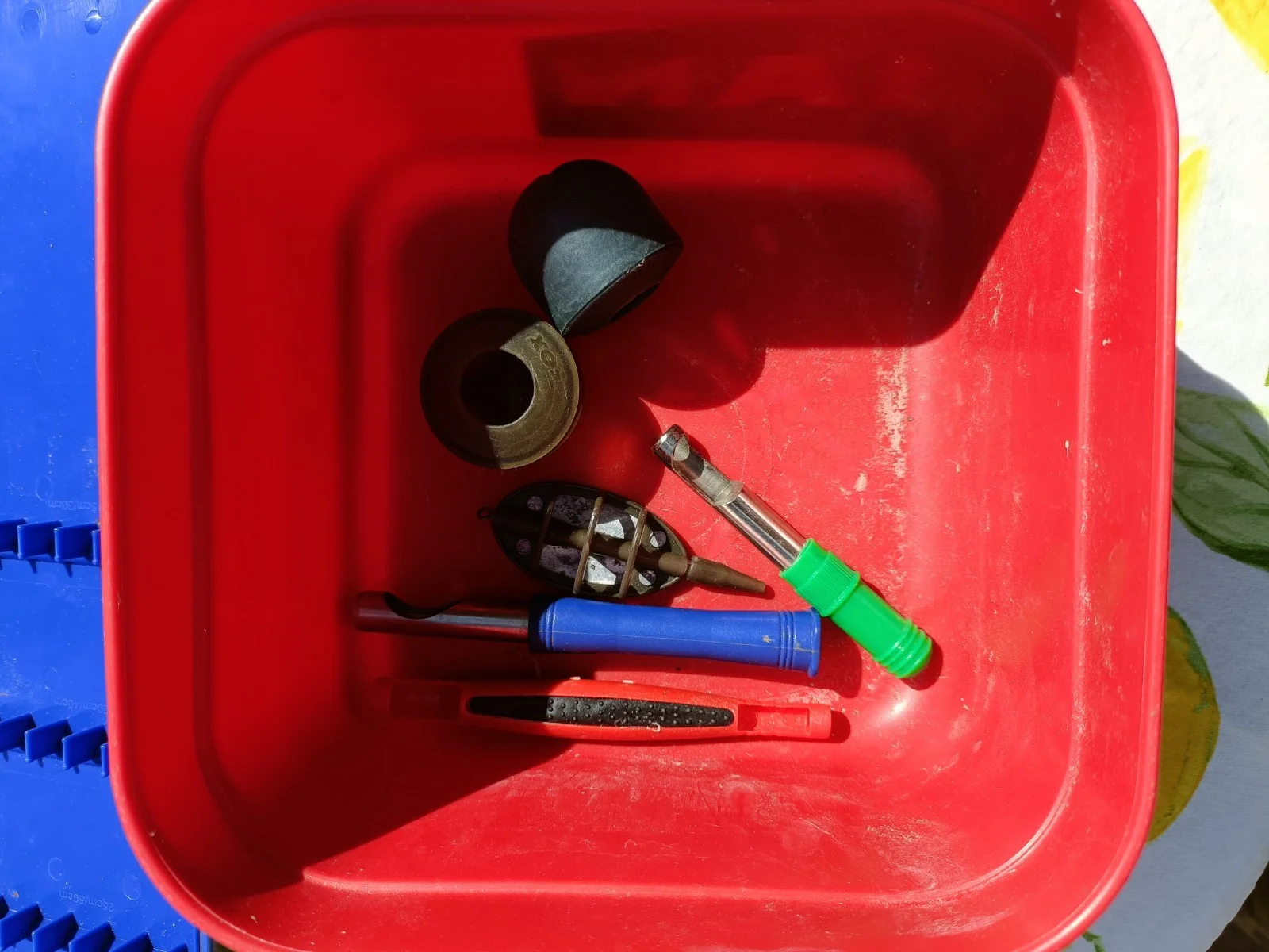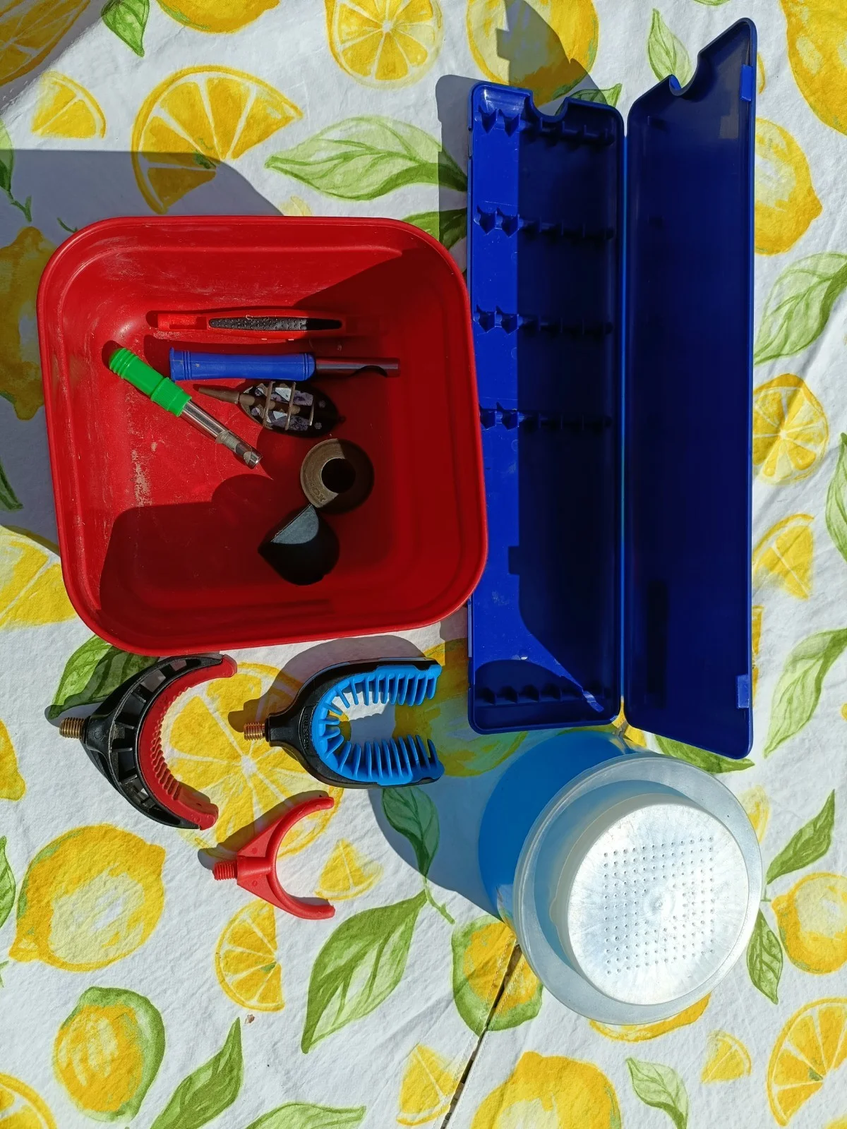 One Preston hook length box, Preston rod rest top, two bait boxes matrix and Drennan plus two other rod rest tops, bread punches and pole pots plus a method feeder. Everything has been used but all very useable. UK delivery only.