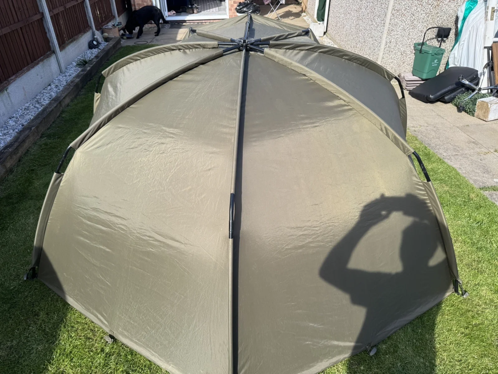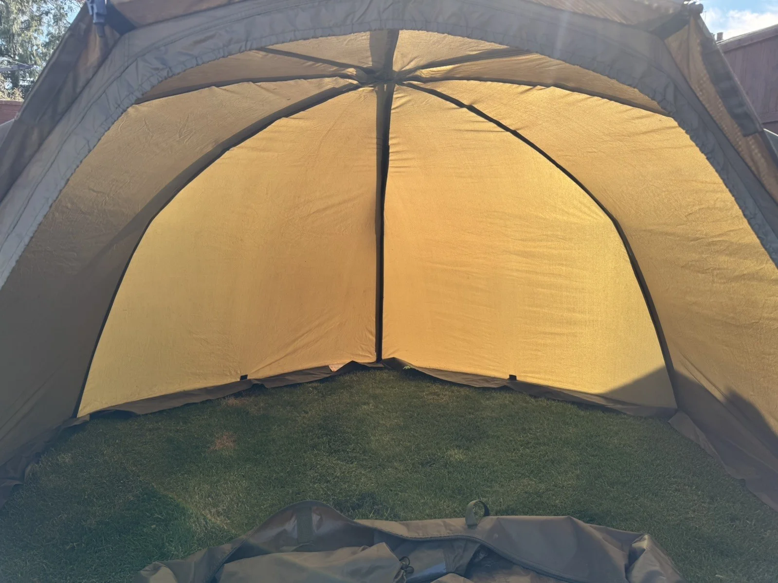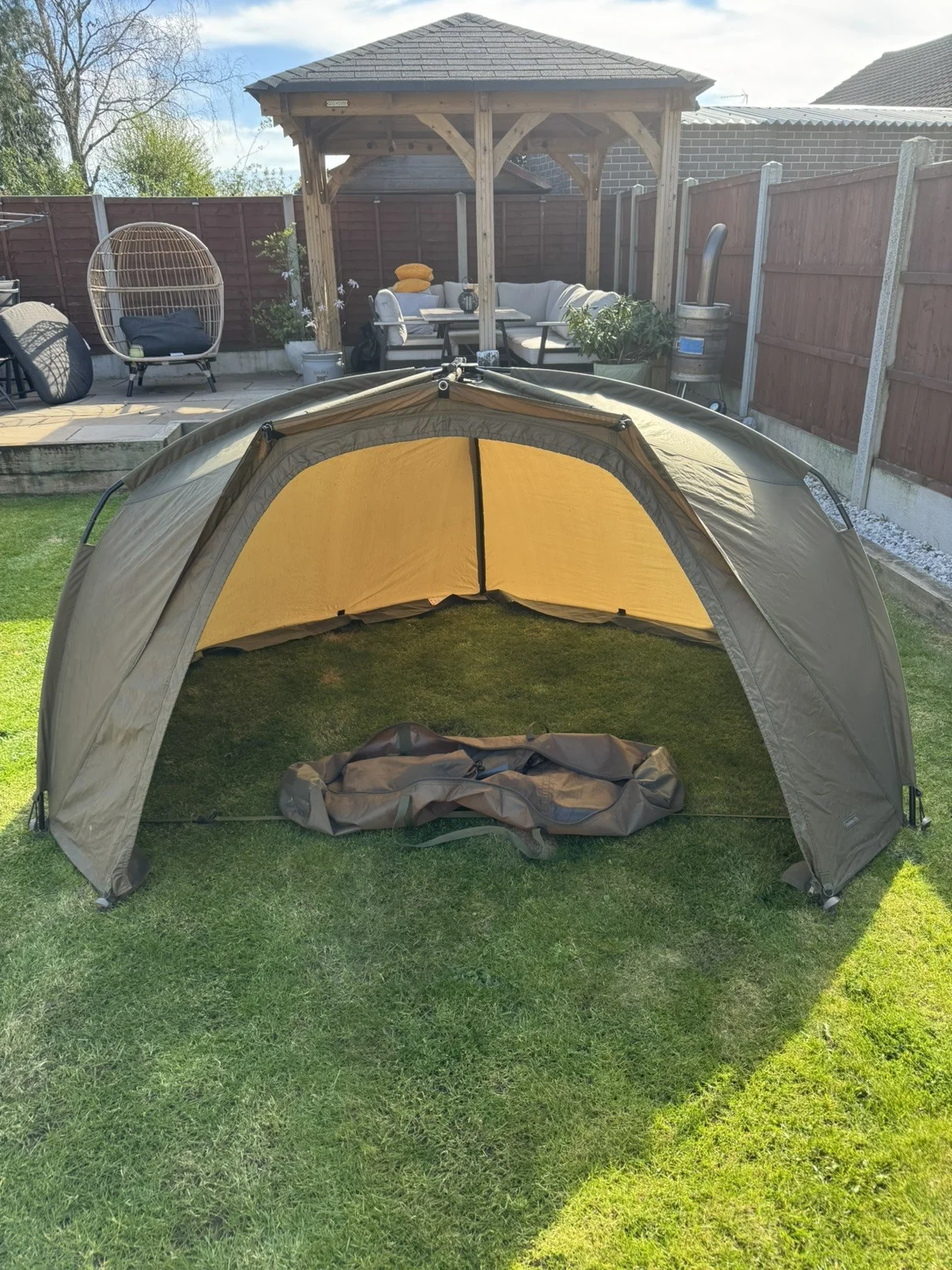 In great condition no damage or stains ,comes with mozzie mesh front panel,tension strap and full set of pegs.
