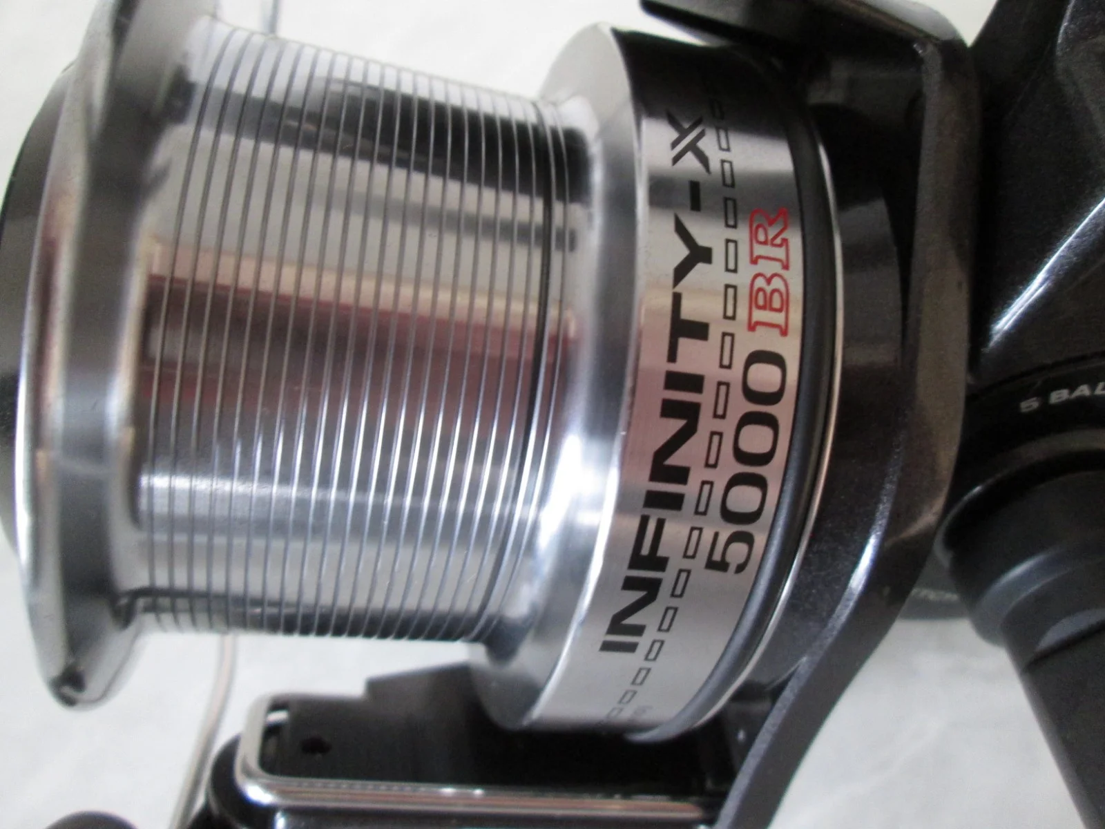 HI. HERE I HAVE FOR AUCTION IS A DAIWA INFINITY-X 5000BR FRONT DRAG BAITRUNNER BIG PIT REEL WITH A SPARE SPOOL PLUS A DAIWA SOFT BAG AND A PADDED NEOPRENE SPOOL CASE IN GREAT USED CONDITION. THE REEL HAS BEEN USED AND THERE ARE SOME VERY, VERY SMALL MARKS ON IT BUT THESE DO NOT IN ANYWAY AFFECT THE SMOOTH RUNNING OF THE REEL AT ALL. ITS A GREAT REEL FOR FISHING AT DISTANCE AND WILL GET YOU TO WHERE THE FISH HANG OUT.THANKS FOR LOOKING AND PLEASE TAKE A LOOK AT MY OTHER FISHING AUCTIONS.MADE IN JAPAN SO YOU KNOW THAT YOUR BE GETTING THE BEST.FREE POST AND PACKING WITHIN THE UK ONLY.