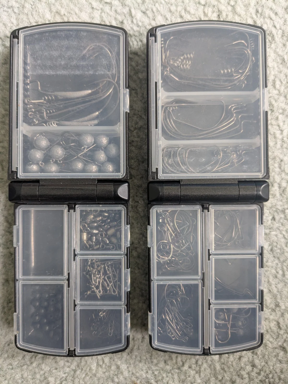 As pictured, 3 meiho tackle boxes with assorted hooks, weights and clips. Great condition.