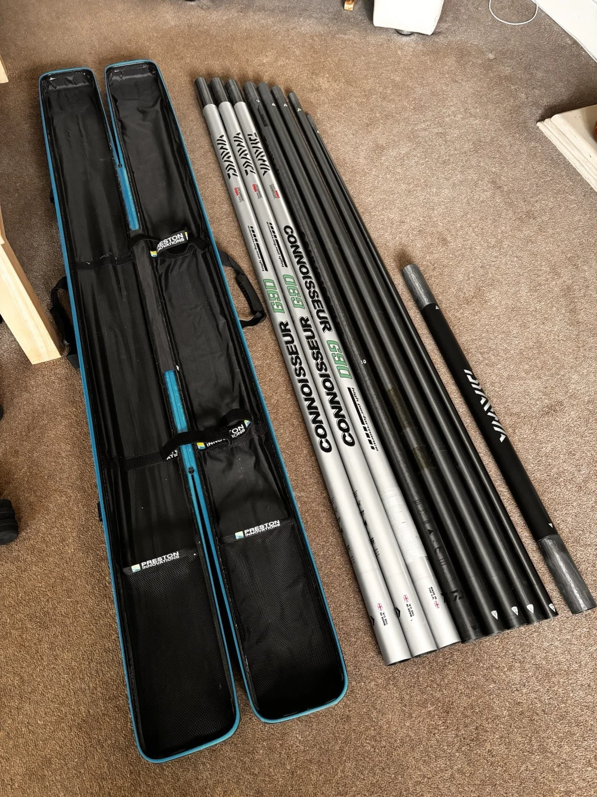 Daiwa G90 pole only with Preston hardcase. Used wth some professional repairs. 11 m section , 7m and no 4 as pics. Repairs have been done by the pole doctor in Derby and do not affect the overall performance of the pole.