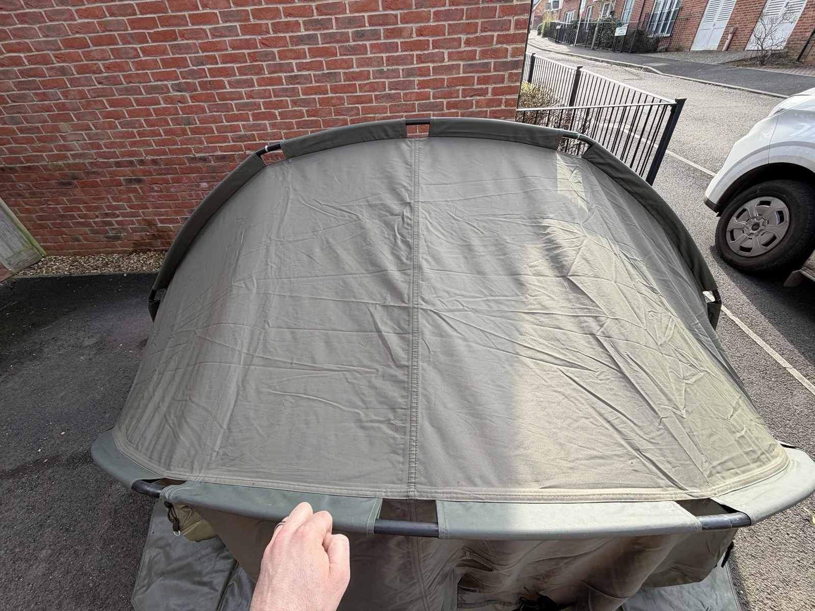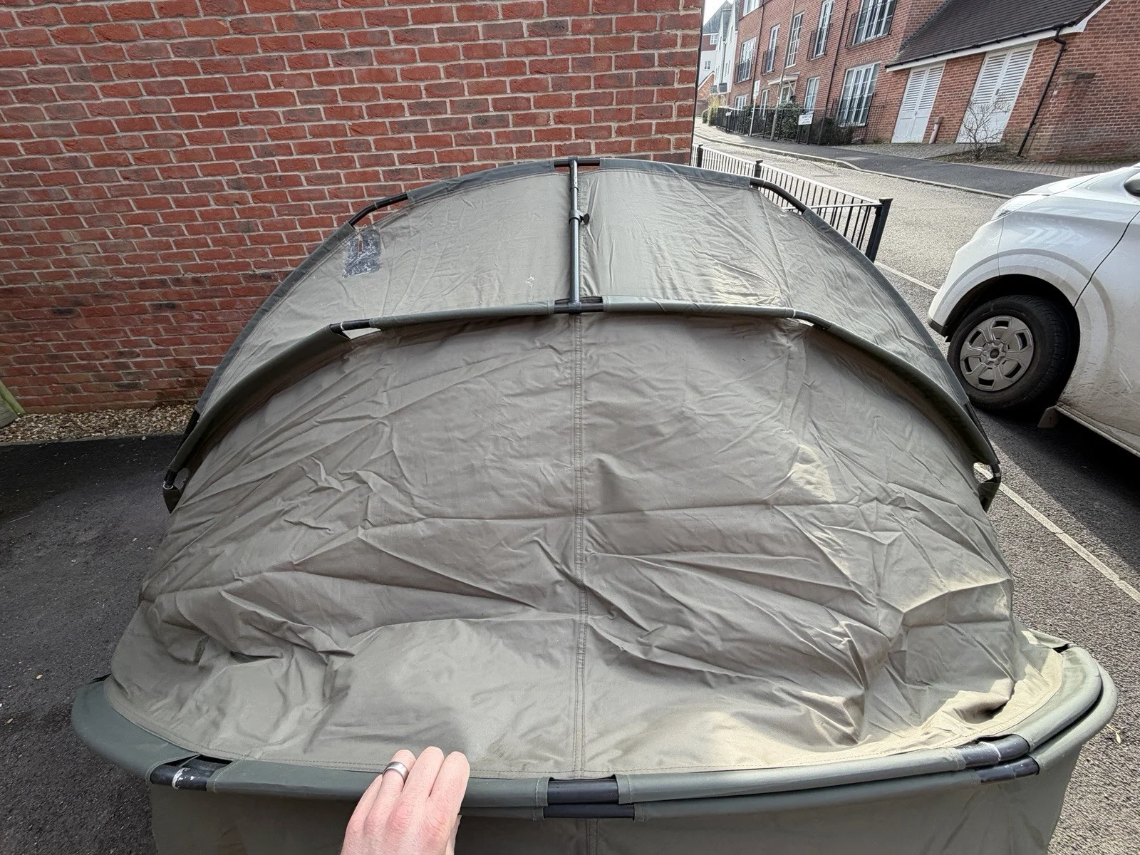 Aqua mk2 bivvy with ground sheet and bag. Can see in pic there is rip in the peak and small hole on bivvy its self, repaired using a puncture kit. The material itself is very clean and in good condition minus the rip and small hole. Collection Newbury or could meet depending on distance.