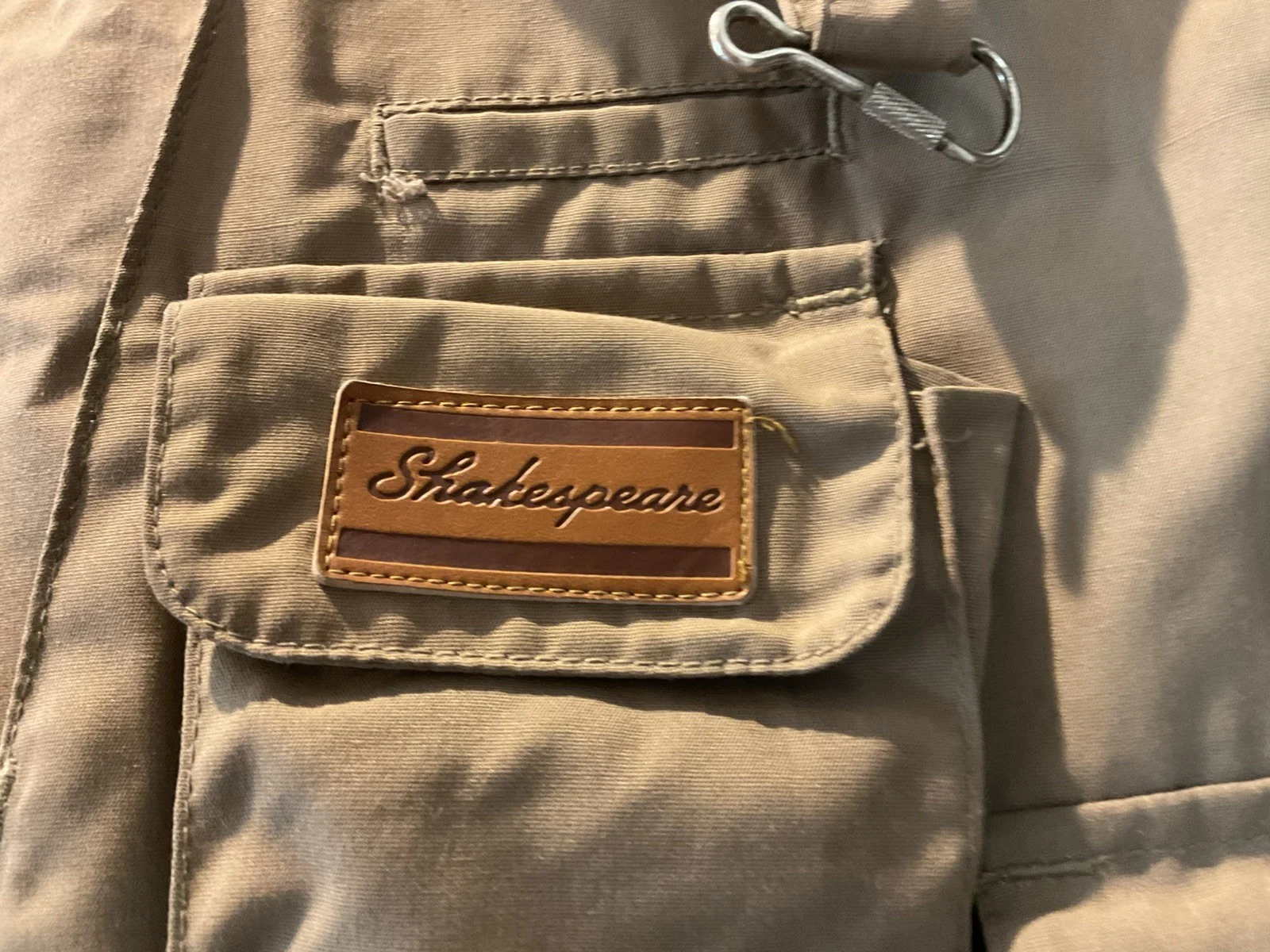 Immaculate condition The Shakespeare JW Cam-Fis Fishing Vest is a stylish and practical addition to any fishing enthusiast's wardrobe. Made from a durable blend of polyester and cotton, this sleeveless gilet is designed for performance and activity on the water. The medium size and khaki colour make it versatile for both men and women, while the immaculate condition ensures you'll be looking smart while catching your limit. Perfect for layering over your fishing gear, this vest is a must-have for any angler.