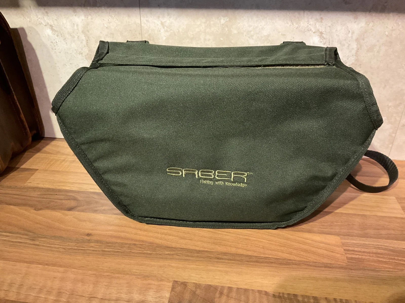 Remote control cover for fishing bait boats, model boats, planes, cars etc - or any activity where you need to keep your remote control dryExcellent condition 2 available for sale, see other listing. Saber Bait Boat Waterproof Handset Cover, Fits all bait boat handsets, keeping handset dry when used in the rain. The Saber Bait Boat Waterproof Handset/Remote Cover is a green-coloured accessory designed specifically for anglers' equipment. Made by the brand Saber in China, this cover provides protection for the handset or remote control of a bait boat from water splashes and potential damage. This product ensures that the essential controls for the bait boat are shielded while out on the water, making it a practical and reliable choice for fishing enthusiasts.