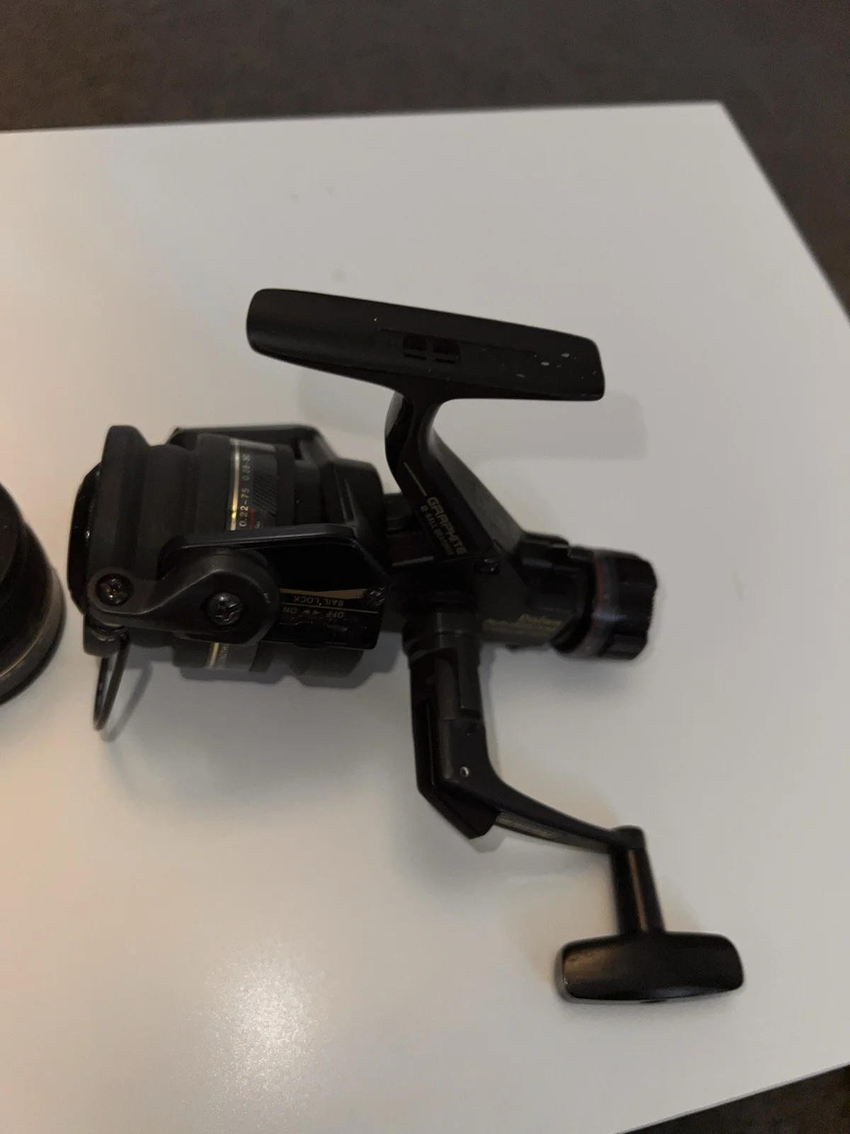 Daiwa auto 1657dmThis is in good clean condition and good working order Finger dab bale armGraphite body 2 ball bearing One touch handle Spare spool