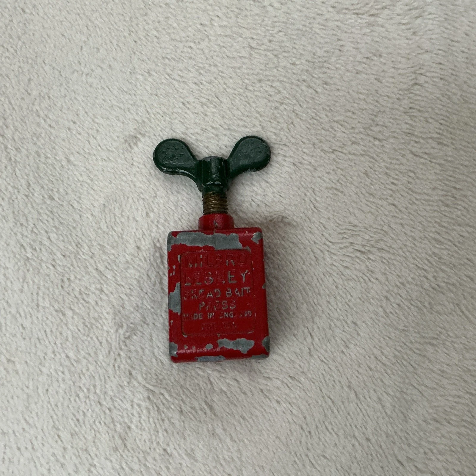The MILBRO LESNEY Bread Bait Press is a vintage fishing tool in working condition. This press, made by the brand Milbro, is designed specifically for creating bread bait for fishing. With a classic red and green colour scheme, this piece of sporting equipment is a must-have for any fishing enthusiast looking to add a touch of nostalgia to their tackle box. Perfect for catching a variety of fish, this bread bait press is a reliable and practical tool for any angler.The above text is ai generated. Please decide for yourself if the description is completely truePlease also see my photos as they form part of the description. Any questions please feel free to message me. Thanks for looking