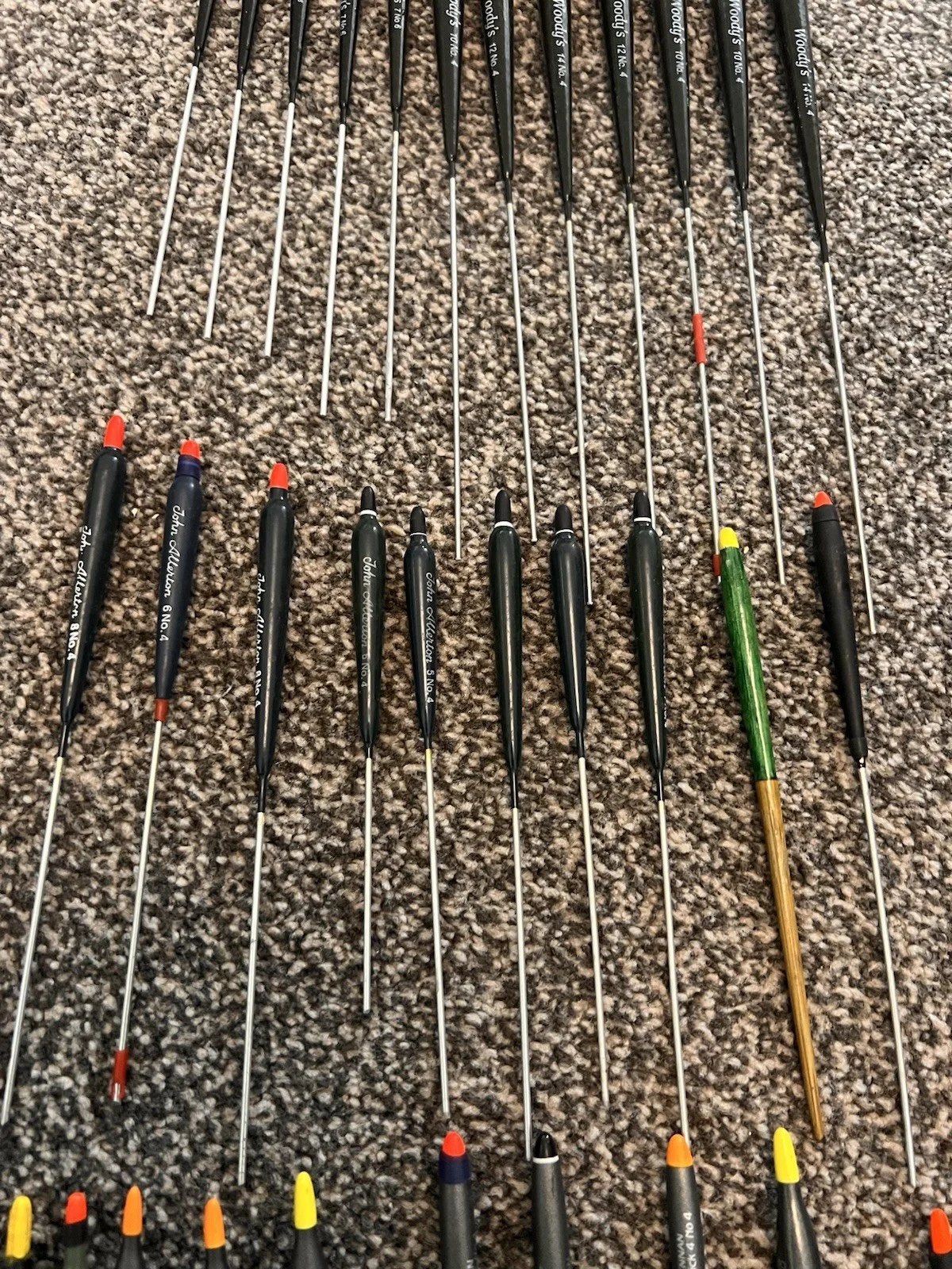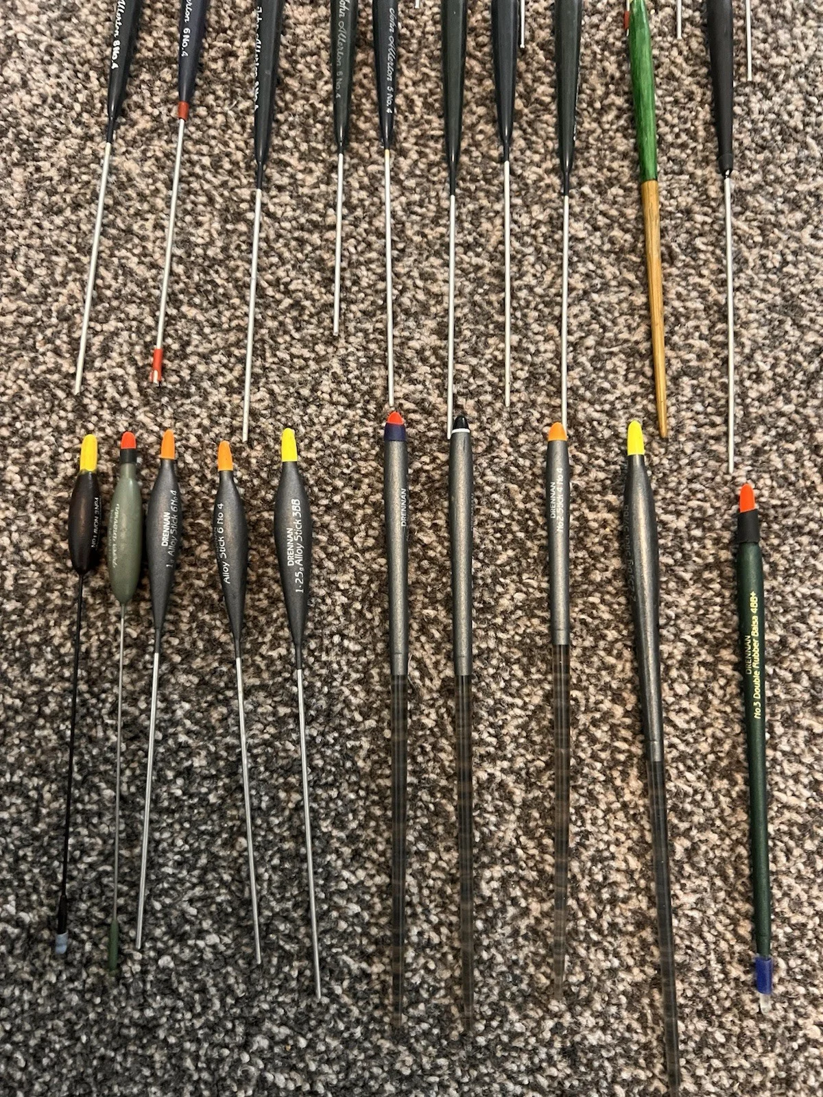 Mixture of stick floats various makes10 x drennan mixed patterns and weights 8 x John allerton mixed weights 12 x woodys mixed sizes and weights 2 x otherNice selection that will cover most of your stick fishing