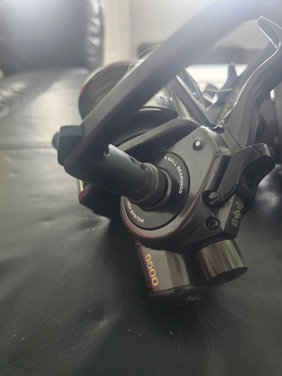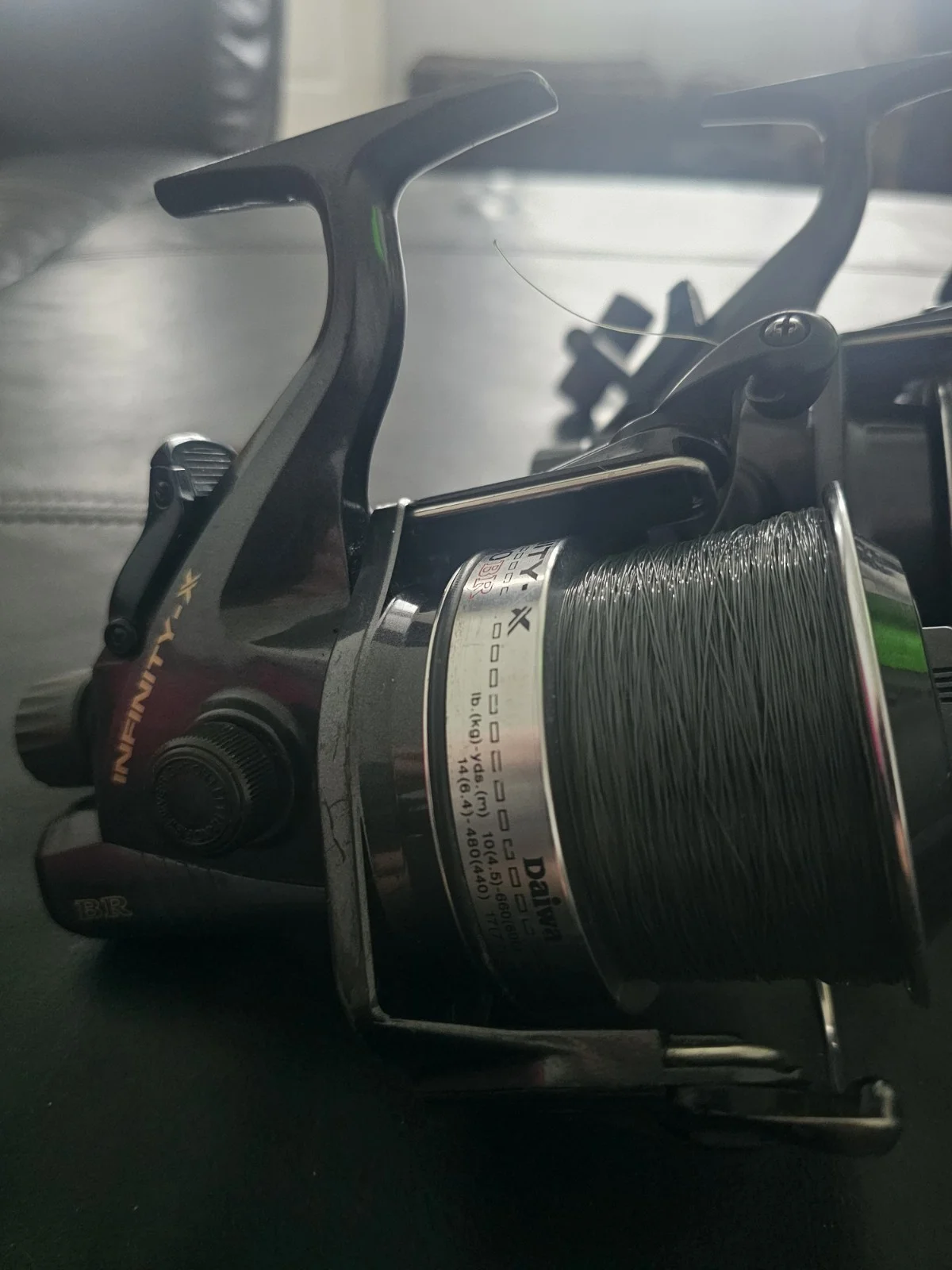 Daiwa Infinity 5500 Baitrunner Big Pits. Auction is for all 3 reels.These reels are outstanding quality big pits with the added bonus of built in bait runners. Also have folding handles for more compact setups.Used reels but loads of life left. Little bit of wear on some of the writing on the spools. Also one reel no longer makes the clicking sound in baitrunner mode...doesn't effect use though.