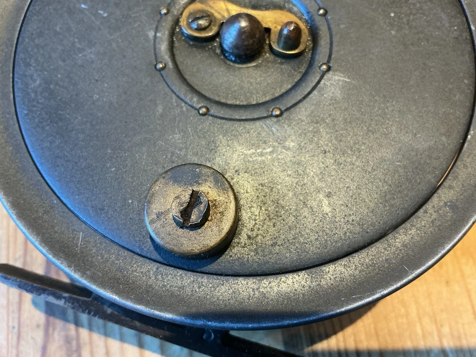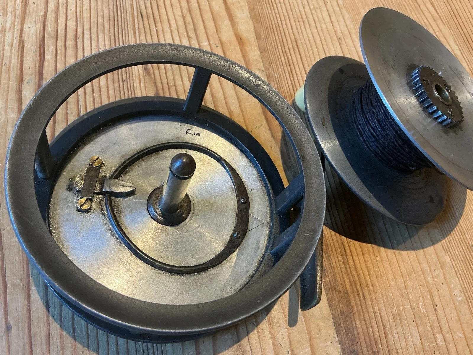 A nice reel some marks but in general very good - looks to have a counter balanced handle? Can’t think of any other reason why. There’s no cracks or breaks and the foot is very good. The ratchet looks good but slips in and out easily. All in all a very nice 4.5 inch Salmon reel.