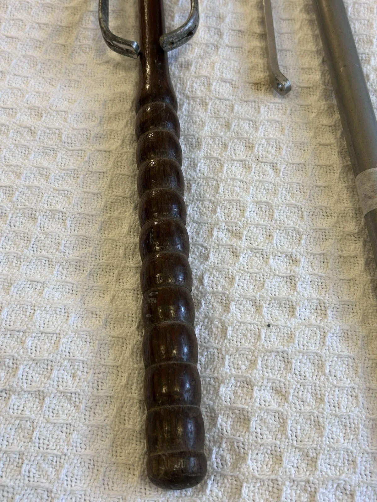 2 vintage net frames. One is unknown but the other is the real gem, an Ogden smiths of London Reversa net with hardwood turned handle and full brass mechanism. I’ve restored a few of these nets but I sadly no longer have the time. Good for any tackle collectors that I enjoy as project. Sold as pictured. Currently selling off a collection of surplus fishing items no longer required.