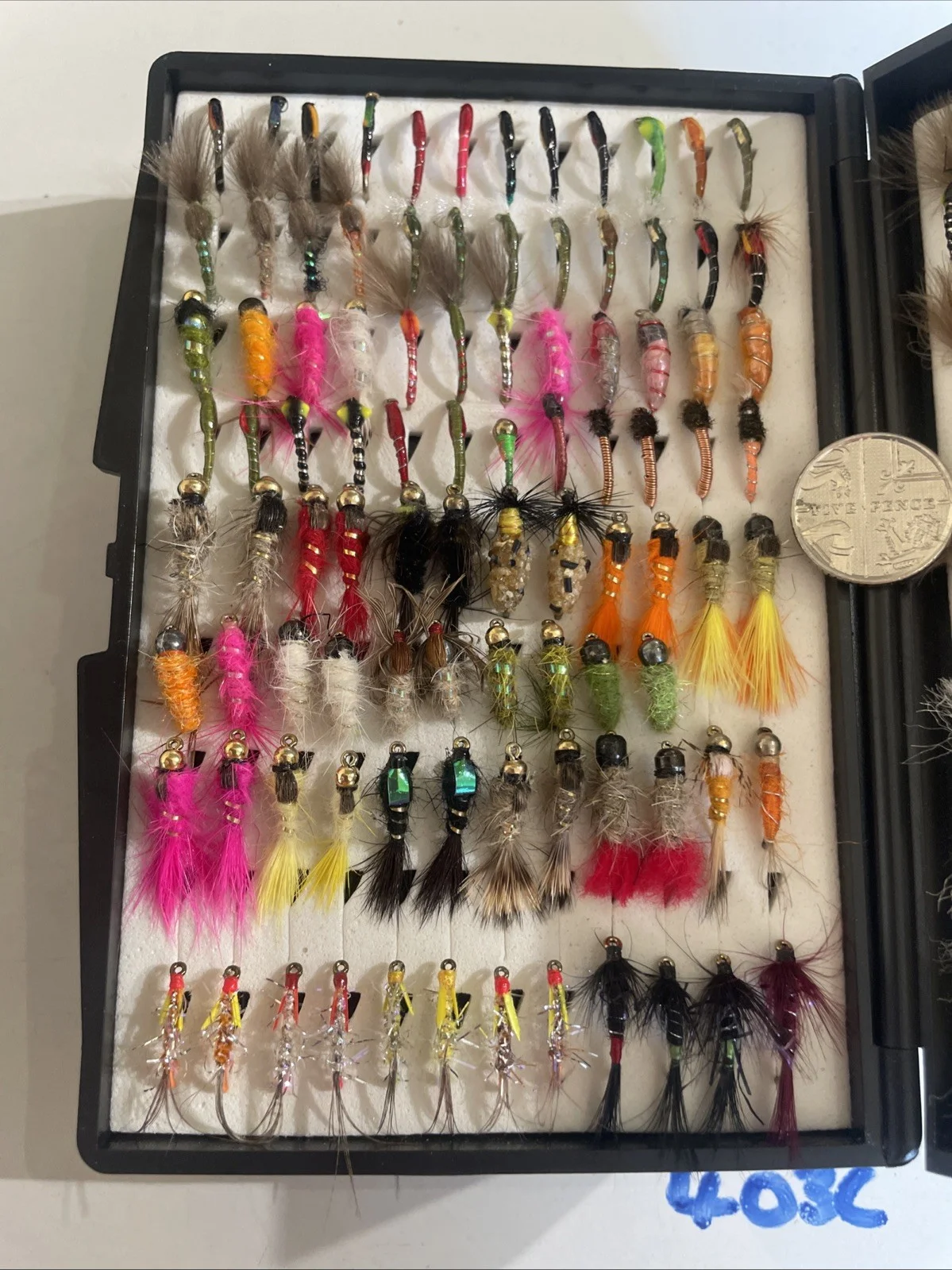 Daiwa Wilderness 2 Tier Fly Box With Buzzers Emerges Nymphs Bead Heads 249 FliesFly box in excellent condition, some light scratches, with original sticker, new and used flies - mostly new - all in good condition - please see all photos Measurements: 13 cm - length 9.5 cm - width 4 cm - height(approx.)For international postage, please contact us direct for a shipping quote, for outside of the UK - Thank you For any other info please contact Richard on 07768352520 Please note only the items described in this listing is what you are biddingPlease note our items are advertised elsewhere and maybe withdrawn at any timePlease also look at our other items as lots to be listed Any questions please feel free to askTight Lines & Happy Bidding