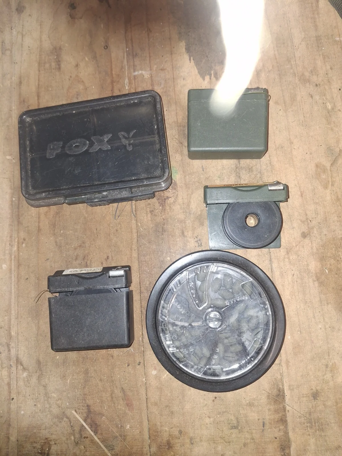fox tackle bundle consisting of 3 system spools one shallow box and nearly a full set of popup weights