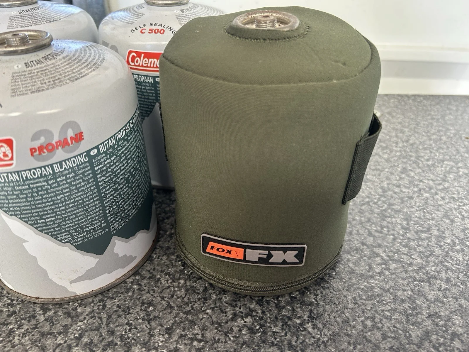 Trakker & Fox Gas Canister Covers And 5 X Gas Canisters