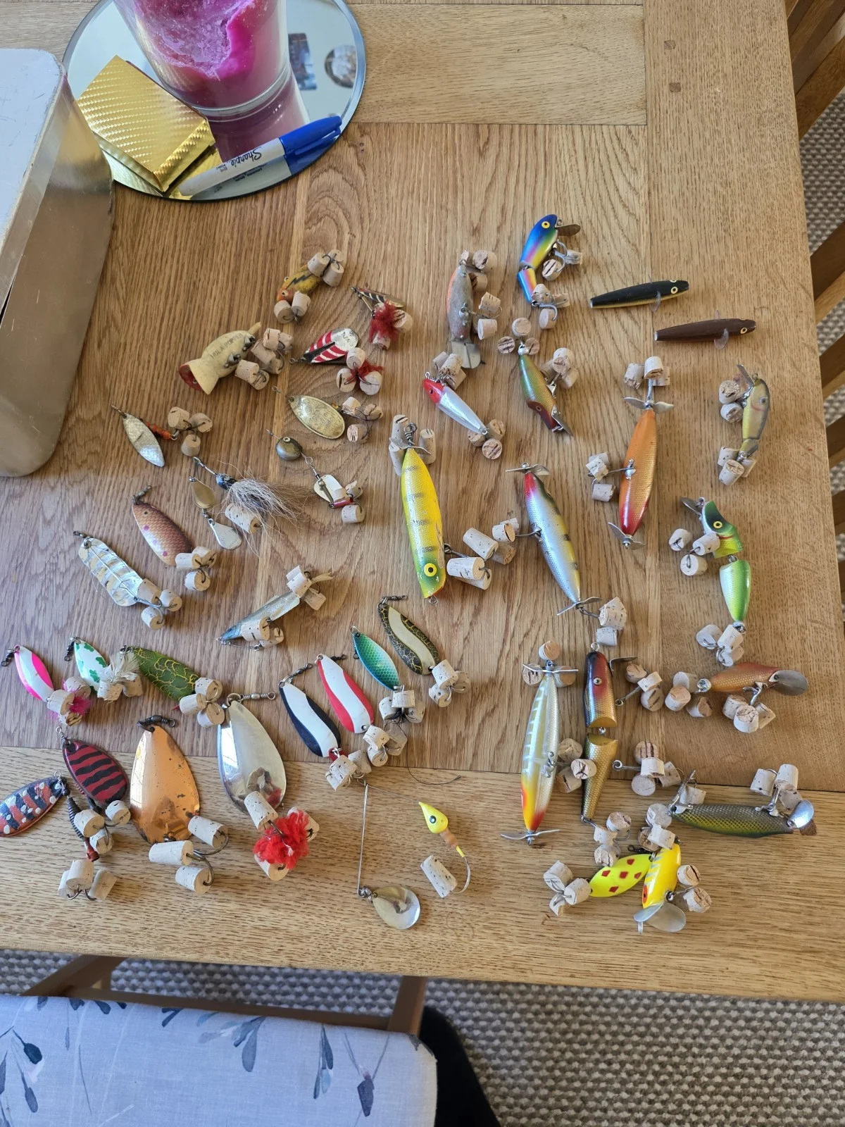 The product is a mix of 43 vintage lures from well-known brands such as Mepps, Heddon, and Abu. These lures are specifically designed for predator fishing and are made of wood, plastic and metal, giving them a classic and authentic look. Perfect for fishing enthusiasts looking to add some old-school charm to their tackle box, this collection of vintage lures offers a variety of styles and designs to enhance the fishing experience.