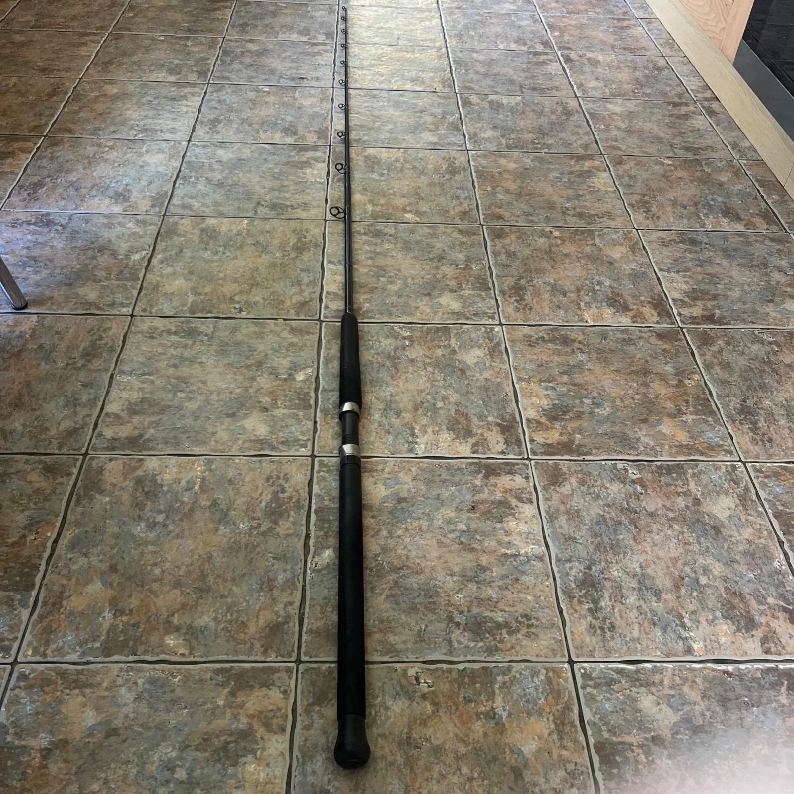 Diawa Super Kenzaki Braid Special Boat Fishing Rod. It’s in decent condition it has no breaks and it had been looked after during its usage. The only cons is that there are a few scratches on the front part off the rod and the foam has scratches aswell